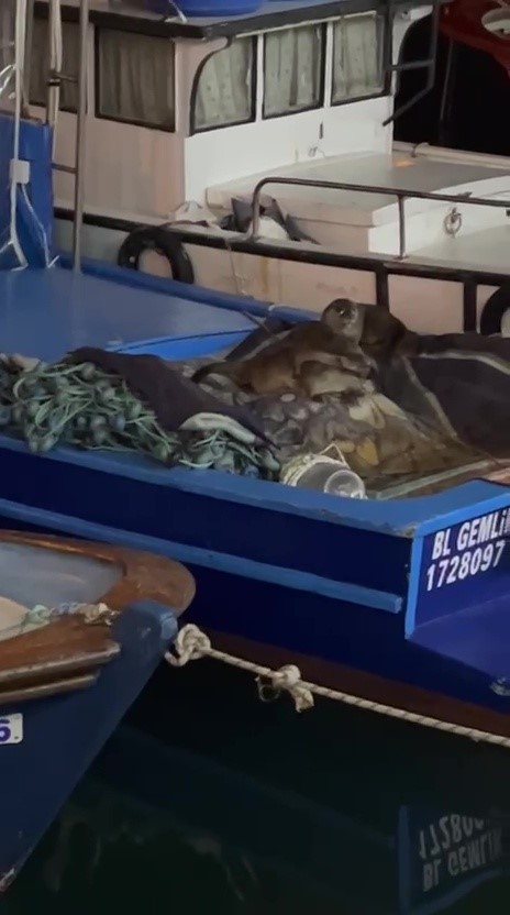 Gece saatlerinde limanda bulunan vatandaşlar, bir teknenin üzerinde hareketlilik fark etti. Yakından bakıldığında ise aç kaldıkları düşünülen anne su samuru ile yavrularının tekneye çıktığı görüldü. Bir süre tekne üzerinde dolaşan sevimli misafirler, limanda bulunanların ilgisini çekti.