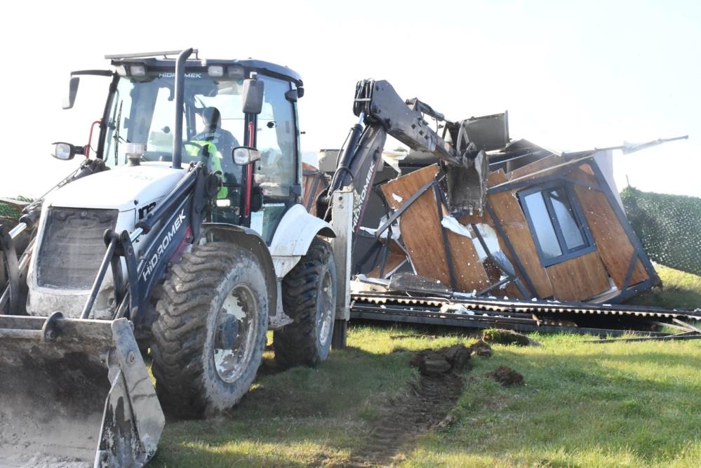 Tarım alanlarına izinsiz şekilde inşa edilen yapılarla ilgili yürütülen denetim ve incelemeler sonucunda, mevzuata aykırı olduğu tespit edilen yapılar hakkında gerekli yasal süreçler işletildi. Belediye tarafından yapılan uyarılara ve tanınan süreye rağmen kaldırılmayan kaçak yapılar, ilgili mevzuat çerçevesinde belediye ekipleri tarafından yıkıldı. Gerçekleştirilen çalışmalarla, tarım arazilerinin amacı dışında kullanılmasının önüne geçilmesi ve verimli toprakların korunması hedefleniyor.