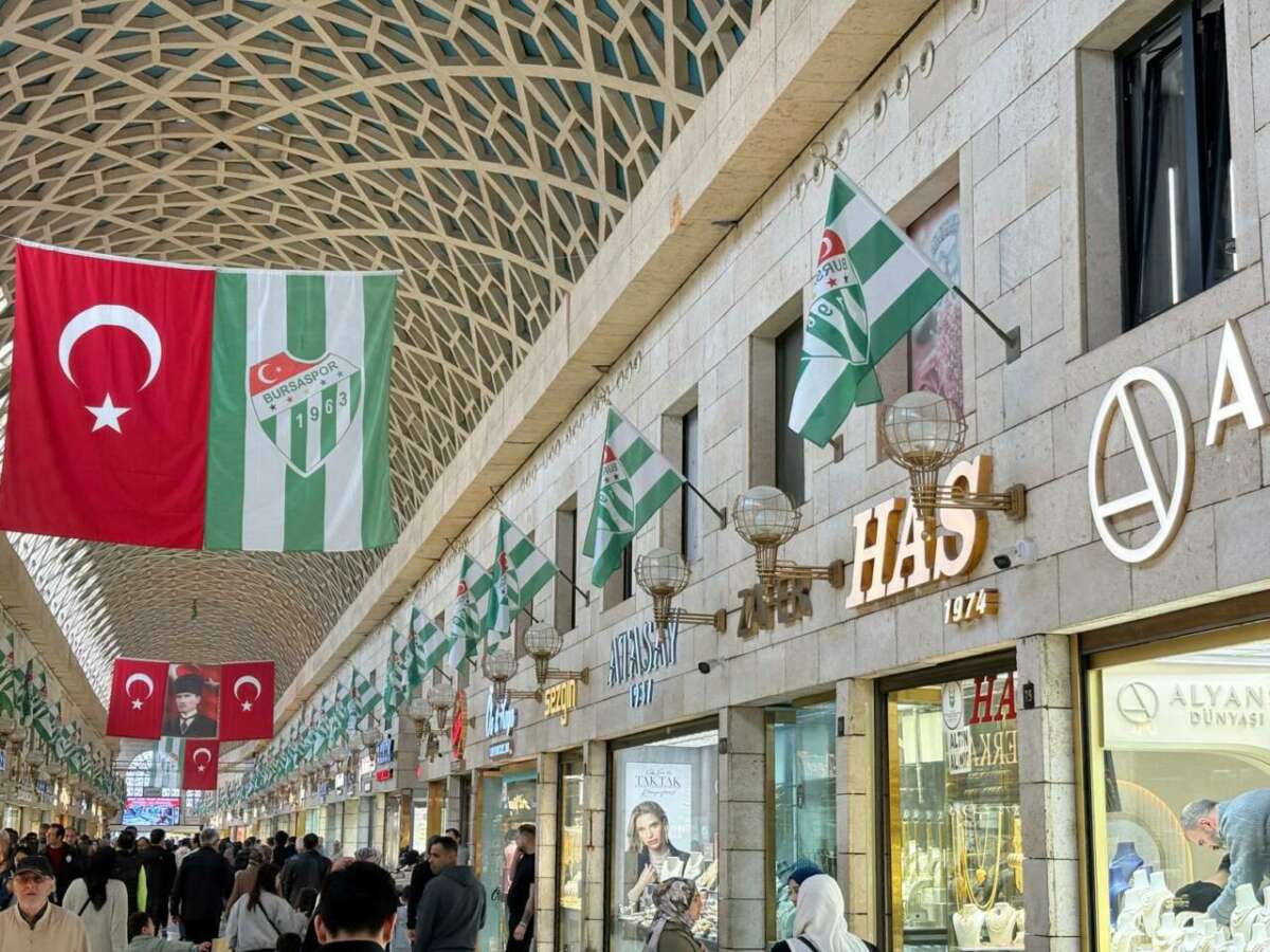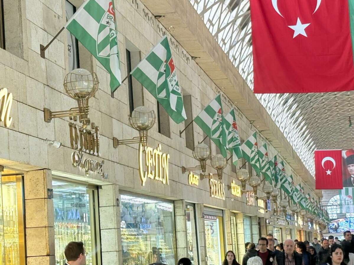 Kentin en işlek noktalarından Kapalı Çarşı, yeşil-beyaz bayraklar ve balonlarla süslenerek adeta şampiyonluk atmosferine büründü.