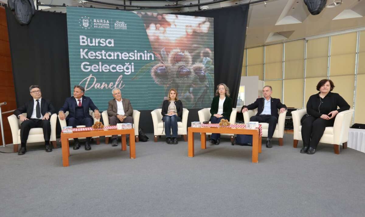 Bursa Büyükşehir Belediyesi, kentin simge ürünlerinden kestanenin topraktan sofraya uzanan yolculuğunda yaşanan sorunları konuşmak, bilimsel ve teknik ihtiyaçları değerlendirmek ve ürünü geleceğe en sağlıklı şekilde taşıyacak adımları belirlemek amacıyla ‘Bursa Kestanesinin Geleceği’ panelini düzenledi. Atatürk Kültür Merkezi Merinos Yerleşkesi’ndeki programa, Bursa Büyükşehir Belediye Başkanı Mustafa Bozbey’in yanı sıra Büyükşehir Belediyesi yöneticileri, akademisyenler, kamu kurumlarının temsilcileri, üreticiler ve sektör paydaşları katıldı. Program öncesinde, katılımcılara pişmiş kestane, kestaneli sarma, kestaneli kurabiye, kestane şurubunda kabak tatlısı, kestane şekeri, kestane çorbası gibi lezzetler ikram edildi.