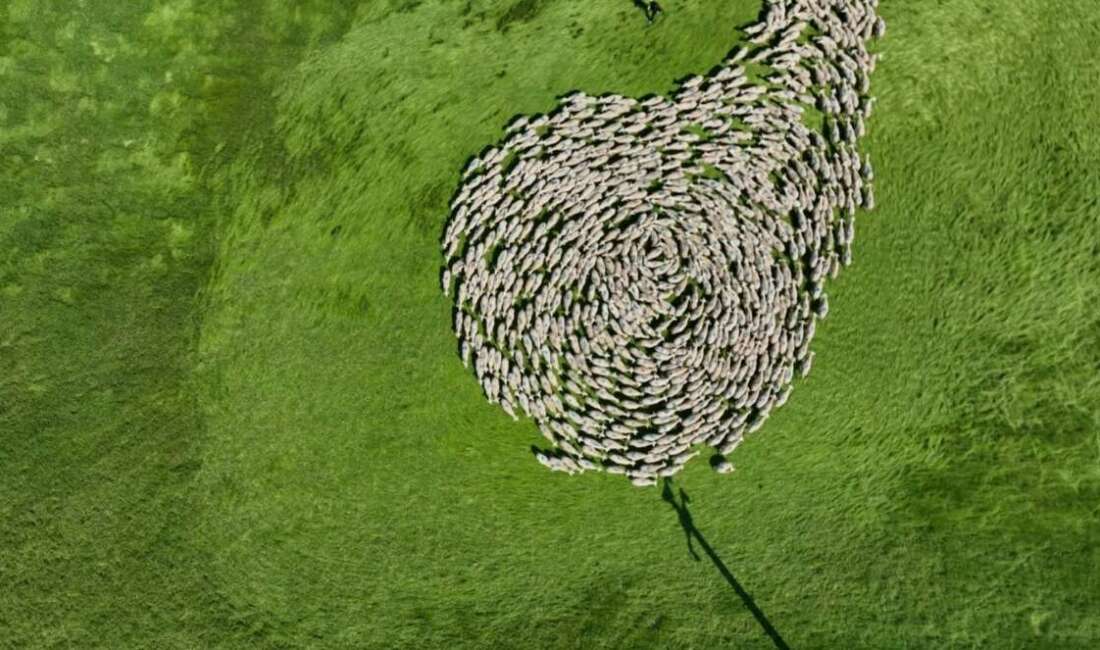 Türkiye’nin köklü tarım işletmelerinden TİGEM Karacabey Tarım İşletmesi, bu kez tarım ve hayvancılığın ötesine geçen etkileyici bir görüntüyle gündeme geldi. 89 bin dekarlık geniş arazide faaliyet gösteren işletmede, binlerce koyunun çobanların yönlendirmesiyle aynı eksende dönerek oluşturduğu “Dünya Dönüyor” koreografisi, drone ile havadan görüntülendi. Koyunların uyum içinde hareketi, doğanın kendine özgü ahengiyle buluştu.