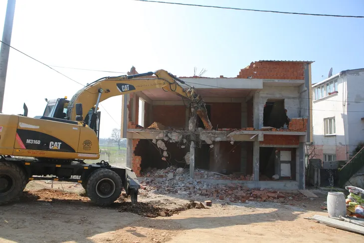 Yapılan tebligatın ardından binanın yıkılması için ekipler harekete geçti.