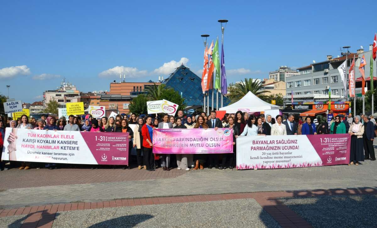 Sağlık Bakanlığı tarafından ülke genelinde yürütülen 1-31 Ekim Meme Kanseri Farkındalık Ayı etkinlikleri kapsamında gerçekleştirilen etkinlikte Cumhuriyet Caddesi’nden Zafer Meydanı’na doğru yoğun katılımla gerçekleşen bir yürüyüş yapıldı. Bursa Büyükşehir Belediyesi Bandosu’nun marşlarıyla eşlik ettiği yürüyüşe; İl Sağlık Müdürlüğü Halk Sağlığı Hizmetleri Başkanı Dr. İrfan Oğuz, Kamu Hastaneleri Başkanı Dr. Melike Savaş, sağlık çalışanları, sivil toplum kuruluşları, kanser dernekleri ve öğrenciler katıldı. Vatandaşların yoğun ilgiyle takip ettiği etkinlikte, lise öğrencileri ellerinde tuttuğu meme kanserinin simgesi olan dev ‘pembe kurdele’ ile cadde boyunca yürüyüşe eşlik etti.