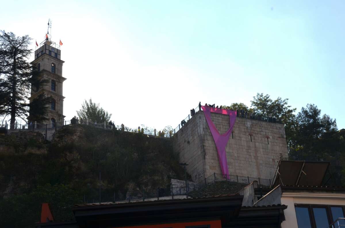 Konuşmaların ardından sağlık çalışanları ve öğrenciler, meme kanserinin simgesi olan dev ‘pembe kurdeleyi’ Bursa‘nın birçok noktasından görülebilecek olan Tophane surlarına astılar. ‘Pembe Kurdele’nin toplumsal bilinç oluşturmak amacıyla ay sonuna kadar şehrin farklı noktalarında asılı kalacağı bilgisi verildi.