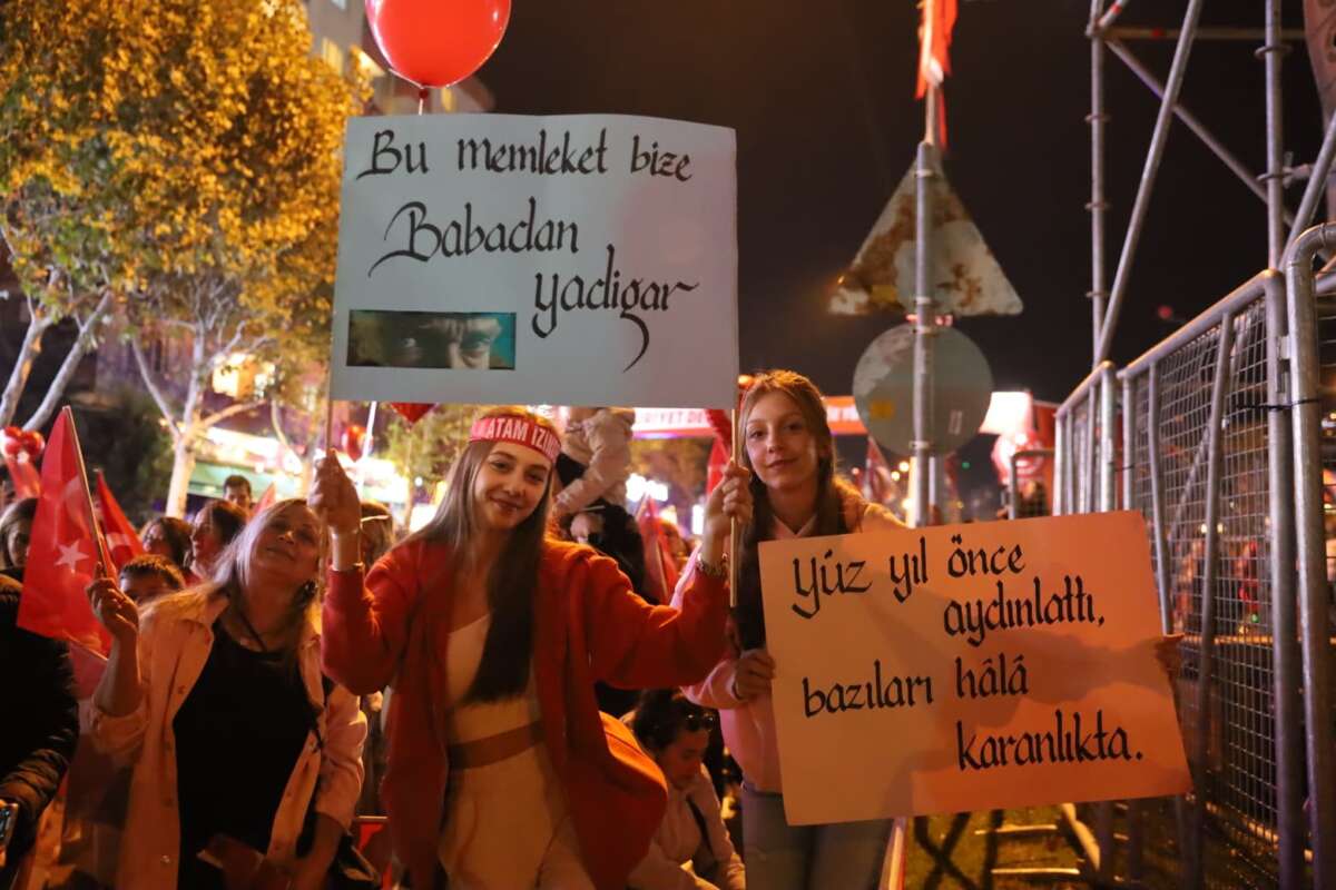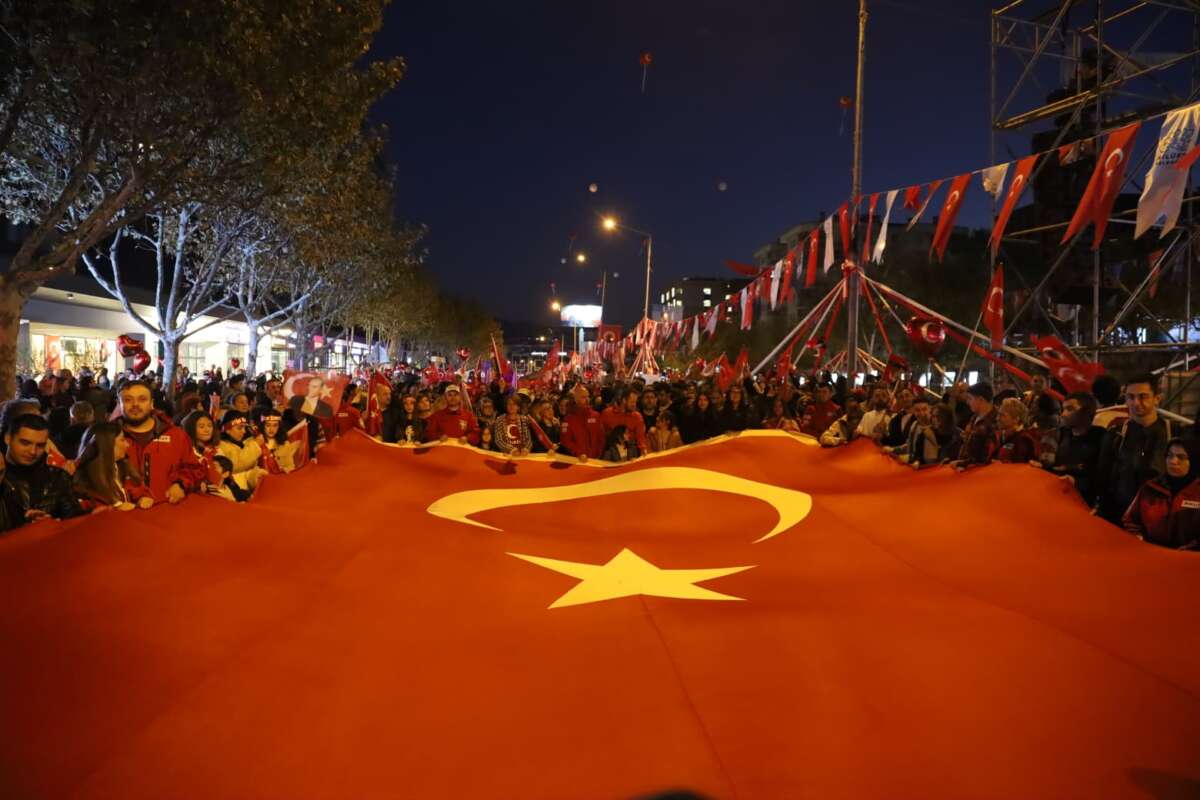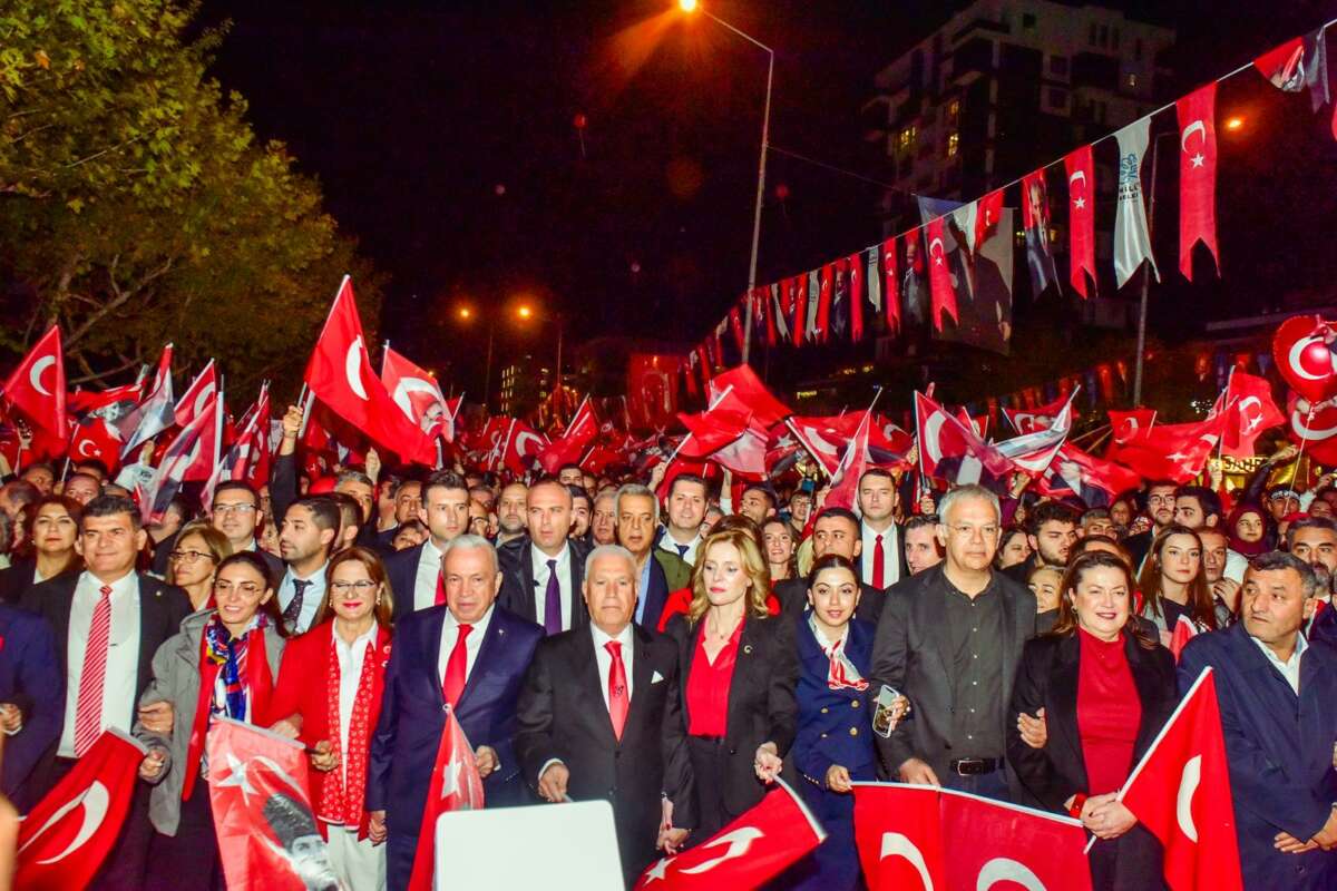 Türkiye’nin birçok yerinde demokrasinin askıda olduğunu, halkın seçtiği başkanların zindanlarda olduğunu söyleyen Başkan Şadi Özdemir, milletin iradesinin tutsak edildiğini dile getirdi. “Bir Ekrem İmamoğlu gider, bin Ekrem İmamoğlu gelir” diyen Başkan Şadi Özdemir “Bu kavga hürriyet kavgasıdır. Bugün geçmişimize olan saygımızı, geleceğimize olan inancımızla birleştirdiğimiz gündür. Bugün, çocuklarımızın gözlerinde Cumhuriyet’in ışığını gördüğümüz gündür. Ve o ışık hiç sönmeyecek. Atam, söz veriyoruz. Senin kurduğun Cumhuriyet’i sonsuza kadar yaşatacağız. Yaşasın Cumhuriyet. Yaşasın Türkiye Cumhuriyeti. Yaşasın Mustafa Kemal Atatürk. Cumhuriyet Bayramımız kutlu olsun” dedi.
