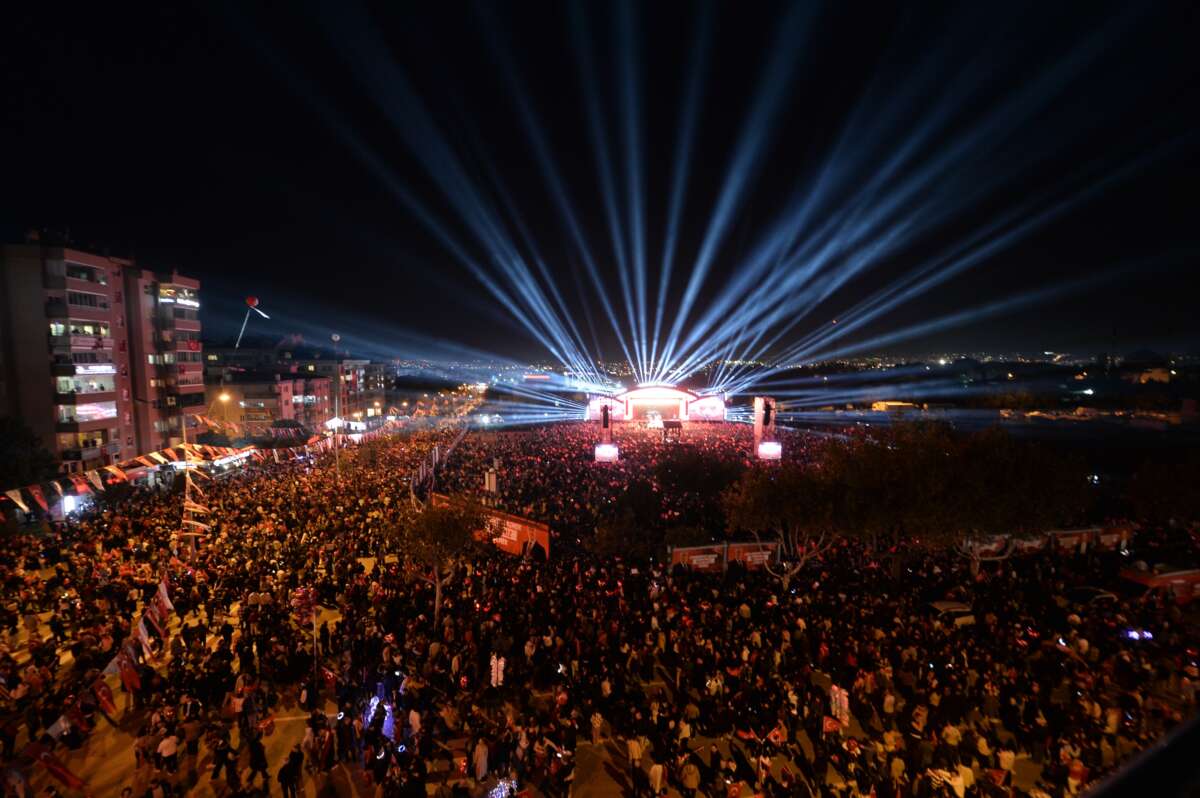 Bursa Büyükşehir Belediyesi ve Nilüfer Belediyesi’nin birlikte düzenlediği Cumhuriyet Bayramı kutlamaları, DJ performansı devam etti. Müziğin ritmine kendini bırakan yüz binlerce Bursalı, telefon ışıklarıyla alanda adeta görsel şölen yaşattı. Ünlü sanatçı Edis’in sahneye çıkmasıyla da coşku doruğa çıktı. Edis’in muhteşem sahne performansı, bayram coşkusu yaşayanlara keyifli anlar yaşattı. Bursalıların birçok parçasına eşlik ettiği Edis’e, gecenin sonunda Bursa Büyükşehir Belediye Başkanı Mustafa Bozbey ve Nilüfer Belediye Başkanı Şadi Özdemir, Atatürk posteri, İznik çinisi ve çiçek vererek teşekkür etti.