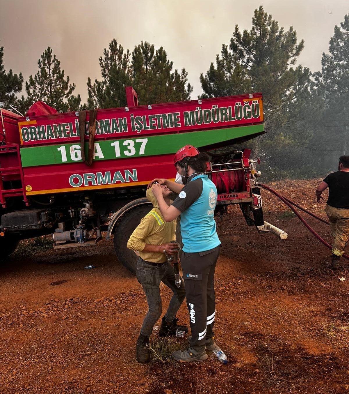 Yangında görev alan UMKE personeli Esra Evren ve Merve Seçkin, zorlu süreçte yaptıkları çalışmalarla ilgili açıklamalarda bulundu. Yangının başladığını öğrendikleri andan itibaren hazırlık için gerekli çalışmalara başladıklarını belirten UMKE personeli Esra Evren, “Lojistik ekipmanlarımıza ve medikal ekiplerimizin kaç kişiden oluşacağına çok hızlı bir şekilde karar vermemiz gerekiyordu. Bu kararı verdikten sonra ekiplerimizle beraber Gürsu, Kestel bölgesinde oluşmaya başlayan yangına doğru hareket etmeye başladık” dedi.