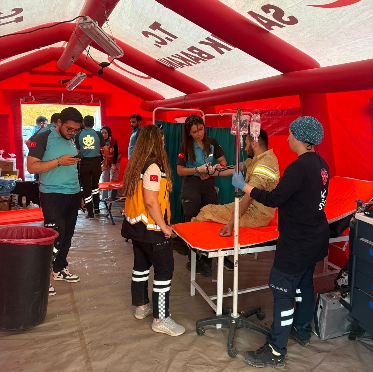 Yangında görev alacak ekipleri belirleyerek işe başladığını söyleyen UMKE personeli Merve Seçkin ise, “Hızlıca hazırladıklarımızı tamamladıktan sonra acil müdahale ünitesi aracıyla beraber 3 kişilik UMKE timiyle Gürsu bölgesine çıkış yaptık. Yolda giderken ekibimizden doktor hanım, çocukluğunun geçtiği bölgelerin alevler içinde kaldığını görünce gözyaşlarına engel olamadı. Biz bunu görünce derin bir üzüntüye kapıldık. Tabi duygularımızı da yönetmemiz gerekiyor. O da kendisini kısa sürede toparladı. Olay yerine varınca hemen sahra hastanemizi kurmaya başladık. Hemen yaralılarımız da gelmeye başladı. Daha önce birçok yangında görev almıştım ancak hiçbiri bu kadar şiddetli değildi. Bizim için çok zorlu bir süreçti” diye konuştu.