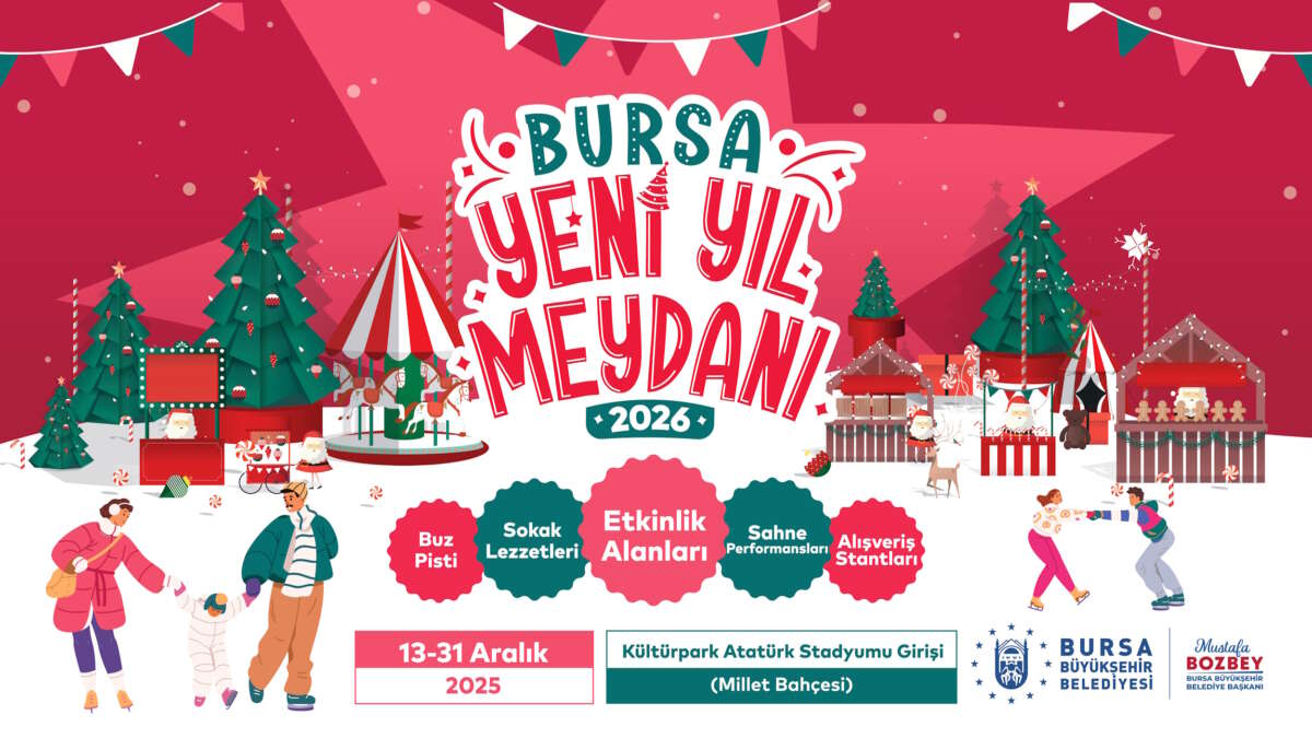 Vatandaşların huzur ve güven içerisinde 2026’yı karşılayabilmeleri için Bursa Kültür AŞ ve ilgili birimleriyle hazırlıklarını sürdüren Bursa Büyükşehir Belediyesi, yeni yılın büyük bir coşkuyla karşılanması için Eski Atatürk Stadyumu alanında ‘Bursa Yeni Yıl Meydanı’nı oluşturdu. Yeni Yıl Meydanı, 13-31 Aralık tarihlerinde gerçekleştirilecek olan birbirinden eğlenceli etkinlikler, özel tasarlanmış stantlar, tematik alanlar, ışıklandırmalar ve aktivitelerle kentin sosyal yaşamına önemli bir katkı sağlayacak.