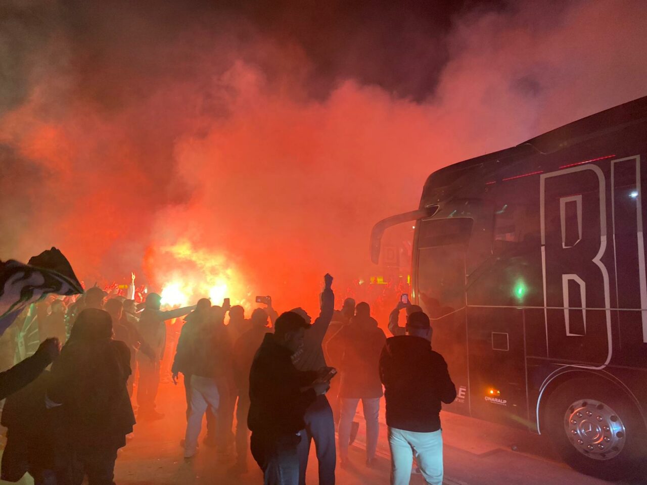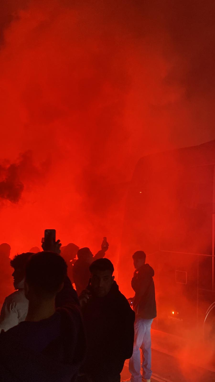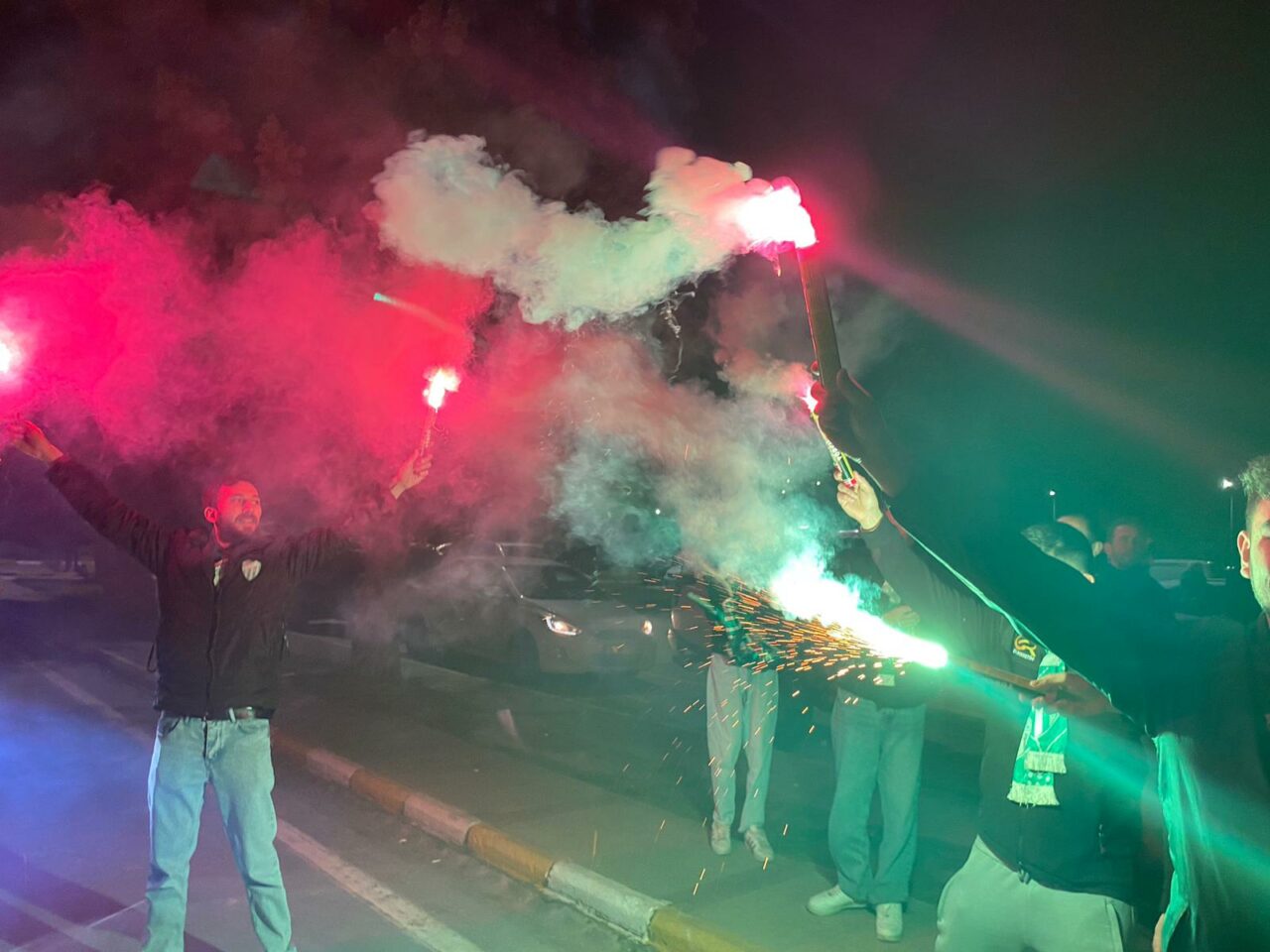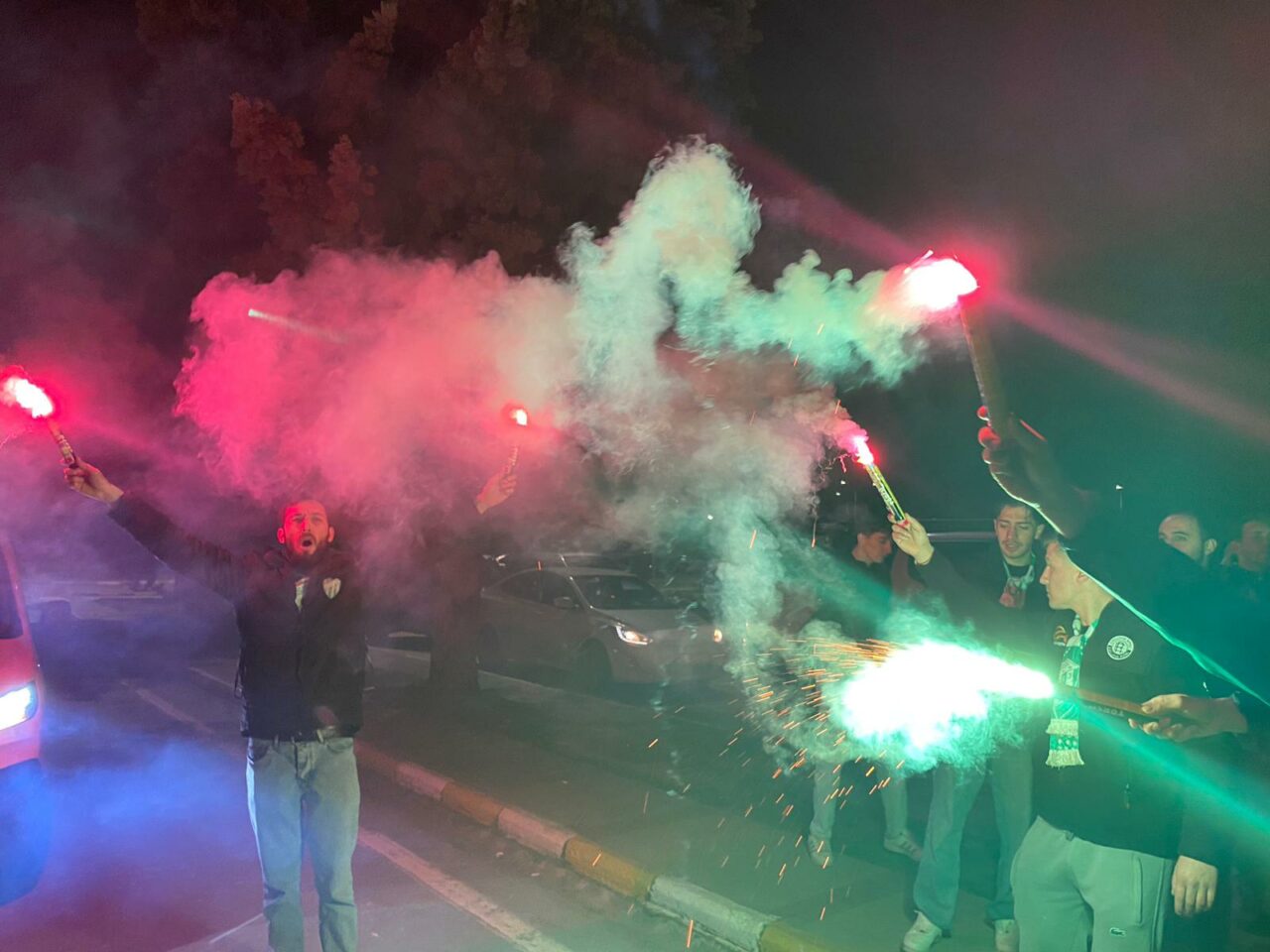 Çiçek ve meşalelerle takımı karşılayan binlerce yeşil beyaz sevdalısı Teknik Direktör Mustafa Er ve futbolculara büyük ilgi gösterdi.