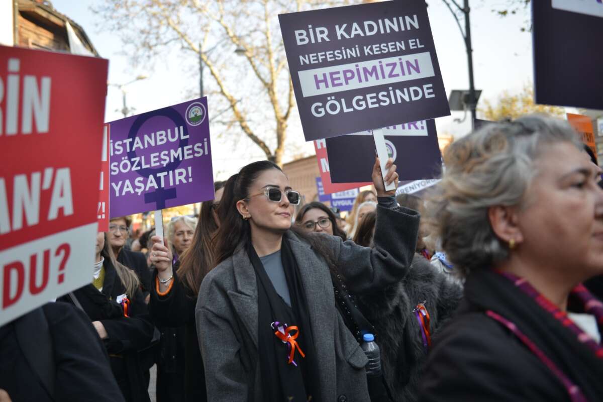 “Kadına yönelik şiddetle mücadele demek; kadınların eşitlik, özgürlük ve güvenlik içinde yaşama hakkını savunmak demektir” şeklinde duygularını dile getiren Bursa Kent Konseyi Kadın Meclisi Başkanı Derya Şimşek Aksakal, ”Biz kadınlar, hayatlarımızı savunmak için yürüyoruz. Şiddetsiz bir yaşam için, adalet için, eşitlik için sokaktayız. Bugün buradan bir kez daha ilan ediyoruz: Bir kişi daha eksilmeyeceğiz. Erkek şiddetine boyun eğmeyeceğiz. Hayatlarımızdan, haklarımızdan, özgürlüğümüzden vazgeçmeyeceğiz” dedi.