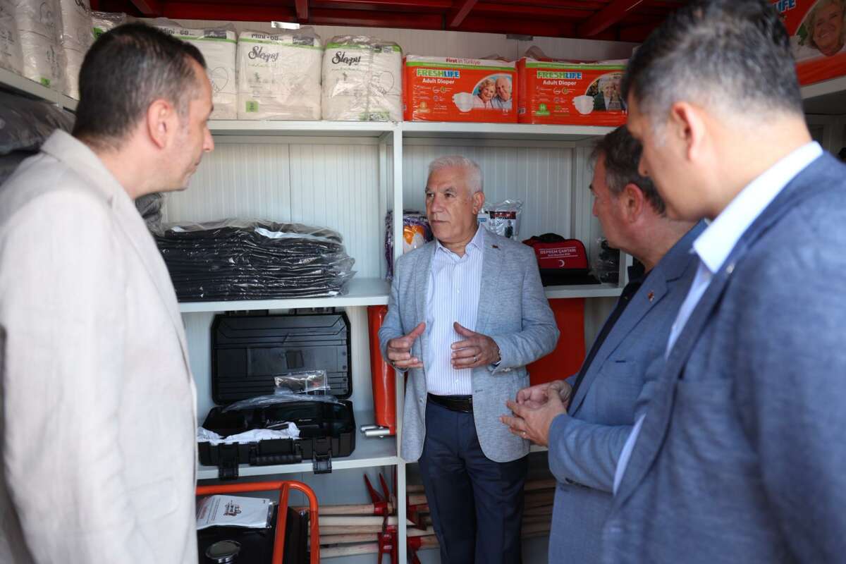 Konuşmaların ardından Başkan Mustafa Bozbey ve beraberindekiler afet istasyonlarını gezerek içerisindeki malzemeler hakkında yetkililerden bilgi aldı.