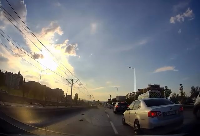 Olay, merkez Nilüfer ilçesi İzmir yolunda meydana geldi. Trafiğin yoğun olduğu anlarda, kayda alınan görüntüler herkesin yüreğini ağzına getirdi. Arkadan gelen aracın durmayacağını fark eden sürücü, kendini sağa doğru attı. O esnada gelen otomobil önüne kattığı araçları, sürüklemeye başladı. Kameralarda 5-6 aracı hurdaya döndüğü kazada, bir motosikletli de ölümden döndü. Araçların altında kalmaktan son anda kurtulan motosikletli, kendini yolun ortasında oturur vaziyette buldu.