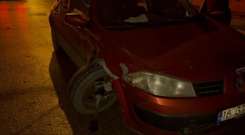 Olay, merkez Osmangazi ilçesi Altıparmak Mahallesi’nde meydana geldi. Bursalı Tahir Caddesi üzerinde alkol uygulaması yapan trafik ekipleri, şüphelendikleri 16 GT plakalı otomobili durdurmak istedi. Sürücü, ehliyetini vereceği sırada gaza basarak uygulama noktasında kaçtı. Uygulamadan kaçan aracın peşine düşen ekipler, şüpheli aracı Selimiye Mahallesi 1. Kara Osman Sokak üzerinde yakaladı. Şüpheli, ekip otosuna çarparak kaçmaya çalışsa da yakayı ele verdi. Kaza anı ise bir iş yerinin güvenlik kamerasına saniye saniye yansıdı.