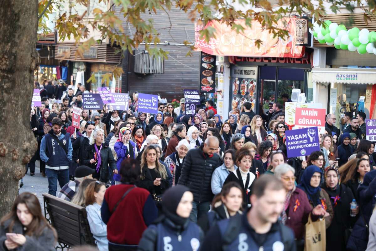 erkek şiddetine boyun eğmeyecek, hayatlarımızdan, haklarımızdan ve özgürlüğümüzden vazgeçmeyeceğiz. İstanbul Sözleşmesi’ni istemekten vazgeçmeyeceğiz” şeklinde konuştu.