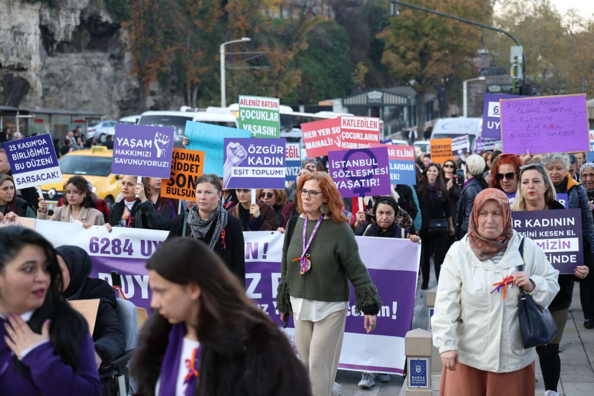 Türkiye’nin pek çok ilde olduğu gibi Bursa’da da binlerce kadın sokaklara çıktı. Cumhuriyet Caddesi’nde toplanan çok sayıda kadın ellerinde pankart ve dövizlerle şiddete, güvencesizliğe, yoksulluğa karşı hep bir ağızdan seslerini yükseltti. Güvenli ve insanca bir yaşam istediklerini belirten kadınlar yürüyüşlerini Hanlar Bölgesi’ndeki Ulu Çarşı girişinde sonlandırarak istek ve taleplerini burada yaptıkları basın açıklamasıyla dile getirdi. Osmangazi, Bursa Büyükşehir ve Nilüfer Kent Konseyi Kadın Meclisleri ile Osmangazi Belediyesi, Bursa Büyükşehir Belediyesi ve Nilüfer Belediyesi’nin ortaklaşa düzenlediği yürüyüşte binlerce kadın bir kişi daha eksilmeyecek, erkek şiddetine boyun eğmeyeceğiz diye haykırdı.