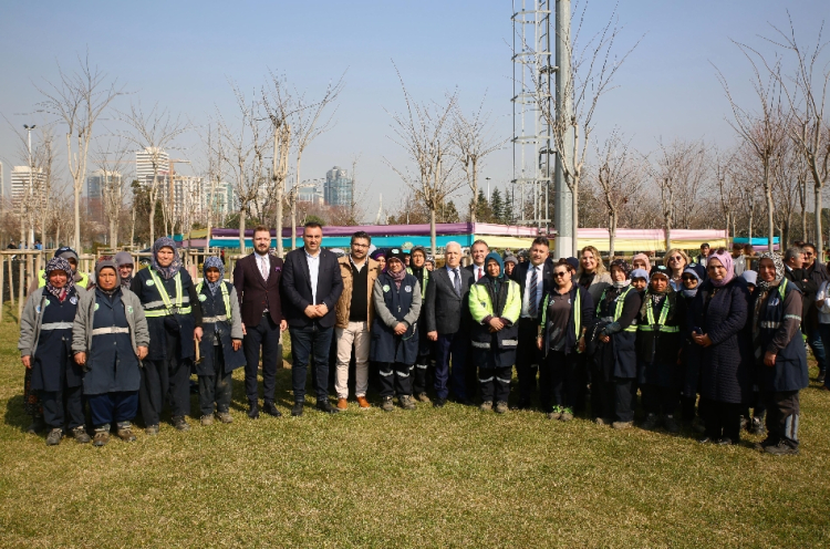 Daha sonra beraberindekilerle çiçek dikimi yapan Başkan Bozbey, günün anısına kadınlara çuha ve gazania çiçeği hediye etti.