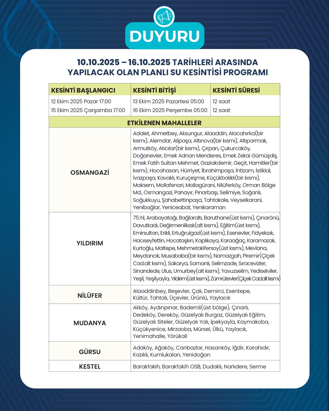 Vatandaşların kesintilerden olumsuz etkilenmemesi için gerekli tedbirleri almaları istendi.