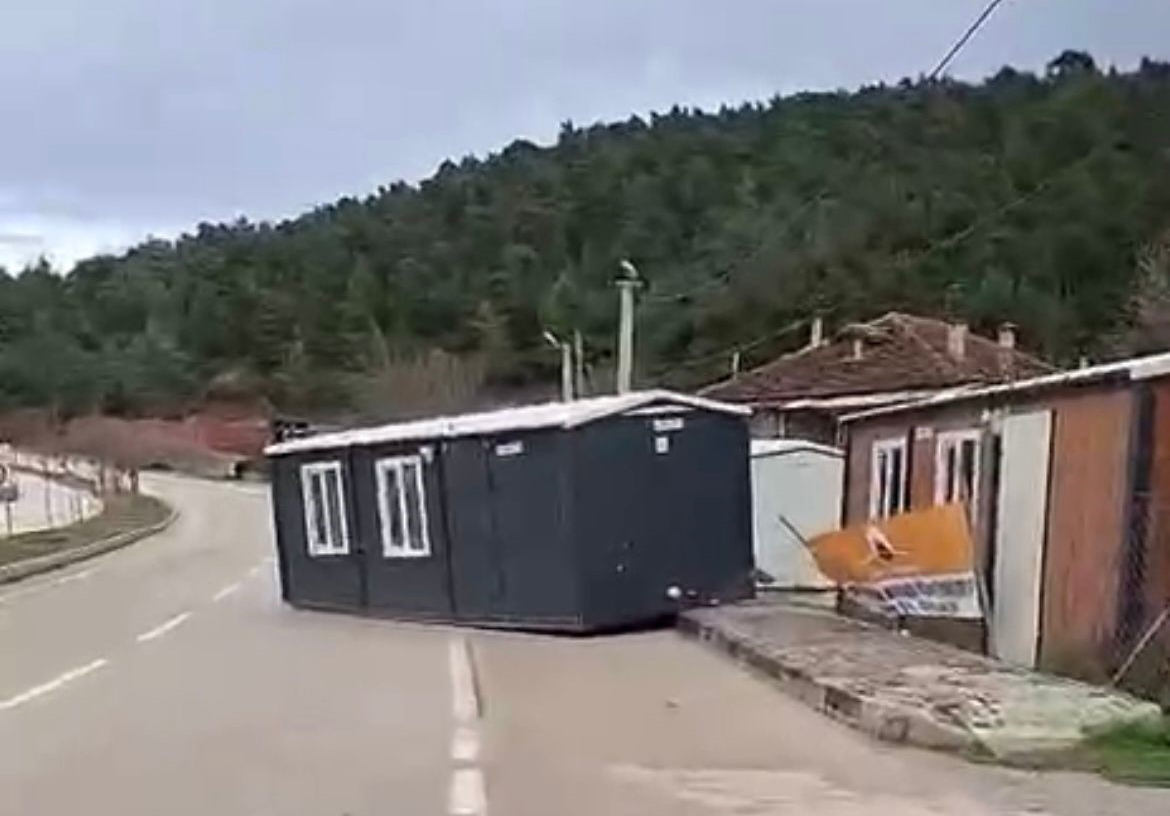 Nilüfer ilçesi Orhaneli yolunda da bir konteyner seyir haline geçti. Fırtına sebebiyle otobüs durağı devrildi.