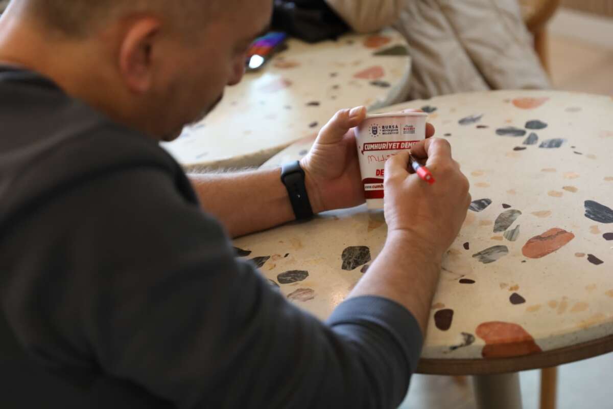 Bu arada 29 Ekim Cumhuriyet Bayramı’na özel olarak kent genelindeki tüm B Kafe’lerde “Cumhuriyet Demek…” temalı kahve bardakları hazırlandı. Bursalılar, özel tasarımlı bardaklarla sıcak içeceklerin tadını çıkarırken, kendi isimlerinin yer aldığı sloganlarla Cumhuriyet coşkusunu derinden hissediyor.