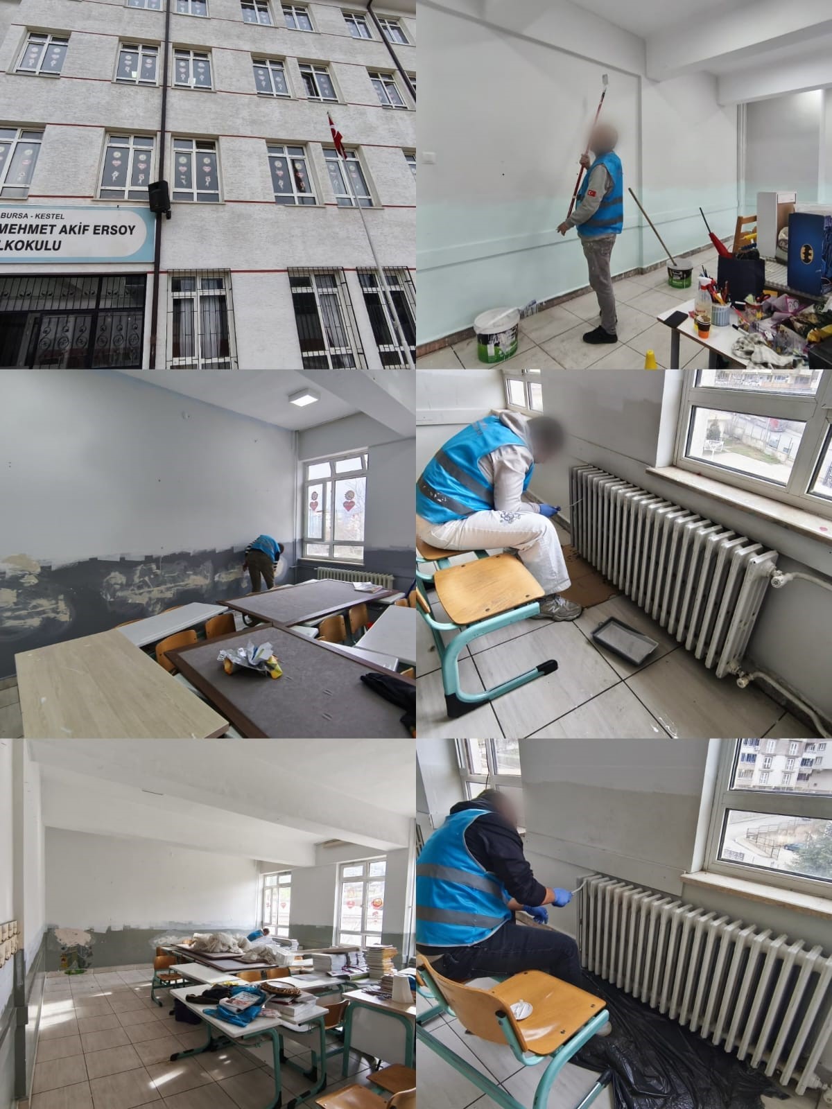 Ara tatil döneminde, ihtiyaç sahibi okullar arasında yer alan Mehmet Akif Ersoy İlkokulu’nda bakım, onarım ve çevre düzenleme çalışmaları yapıldı. Çalışmalar kapsamında okulun sınıfları ve koridorlarında boya ve badana işlemleri gerçekleştirildi, eğitim alanları temizlenerek düzenlendi. Ayrıca okul bahçesi ve çevresinde çevre temizliği yapılarak öğrenciler için daha sağlıklı ve güvenli bir eğitim ortamı oluşturuldu.