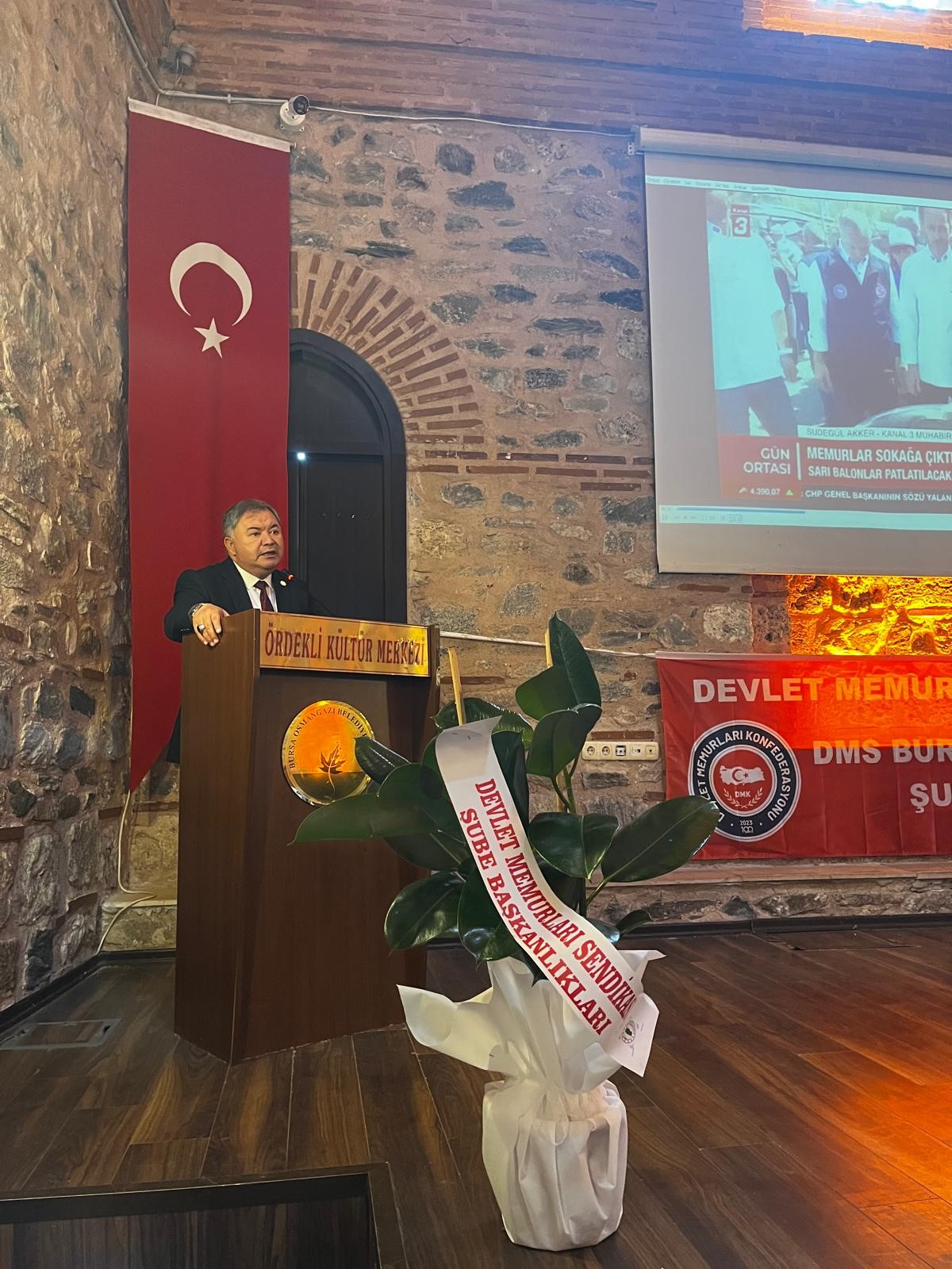 Bursa Bölge Şube Başkanlığı yönetime teşekkür ederek konuşmasına başlayan Cengiz, Devlet Memurları Sendikası’nın 01 nolu Büro Bankacılık hizmet kolunda Türkiye’nin en büyük 3. sendikası konumuna geldiğini, Devlet Memurları Konfederasyonu’nun ise 110 bin üyeye ulaşarak toplu sözleşme masasına oturmak için gerekli çalışmaları sürdürdüğünü ifade etti.