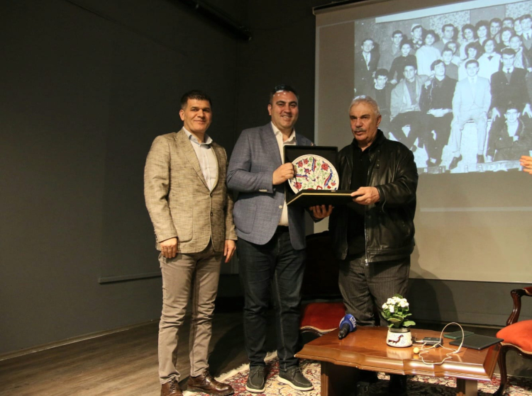 Programın sonunda Büyükşehir Belediyesi Başkanvekili Mehmet Aydın Saldız ve Genel Sekreter Doç. Dr. Ergül Halisçelik tarafından usta oyuncu Halil Ergün’e plaket takdim edildi.
