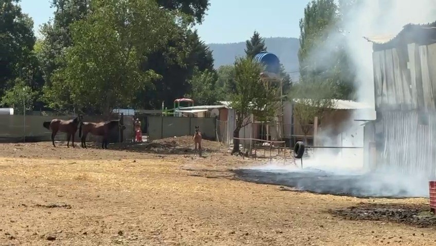 Ekiplerin müdahalesiyle yangın kontrol altına alınırken, içeride bulunan 1 at ile 2 keçi telef oldu. Diğer hayvanlar ise son anda kurtarıldı. Yangında büyük maddi zarar meydana gelirken, o anlar kameraya yansıdı.