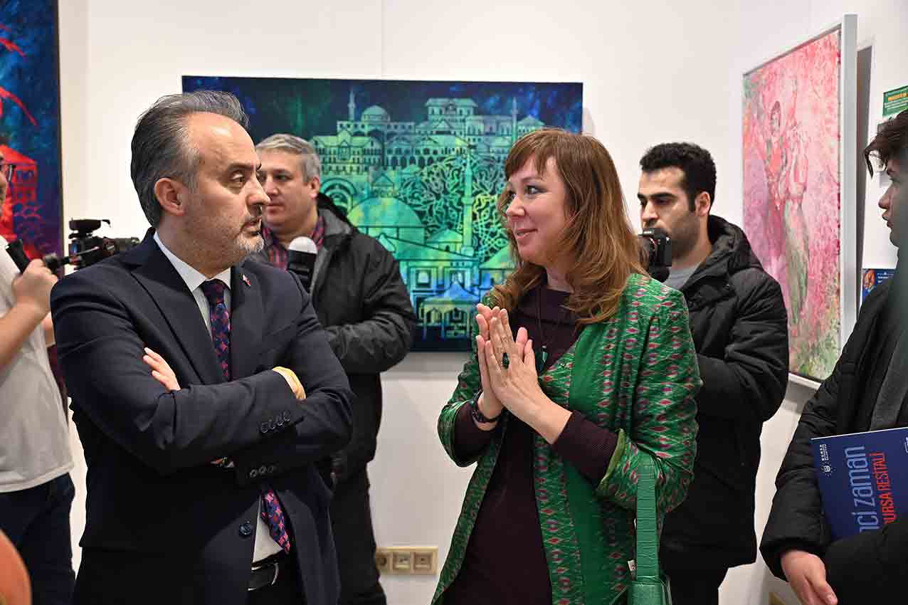 Tayyare Kültür Merkezi’nde gerçekleşen sergi açılış törenine Bursa Büyükşehir Belediye Başkanı Alinur Aktaş, Kültür AŞ Genel Müdürü Fetullah Bingül, Sergi Küratörü İsmail Erdoğan ile serginin oluşmasına eşsiz eserleri ile katkı sağlayan Hikmet Barutçugil, Ali Lei Gong, Cemal Toy, Ahmet Öğreten, Engin Korkmaz, Levent Karaduman, Dağıstan Çetinkaya, Aygül Okutan, Said Lei, Zafer Örs, Mehlika Hilal Kırca, Yasin Yaman, Büşra Yurtseven, Hüseyin Ünlü, Ömer Faruk Boyacı ve çok sayıda Bursalı sanatsever katıldı.