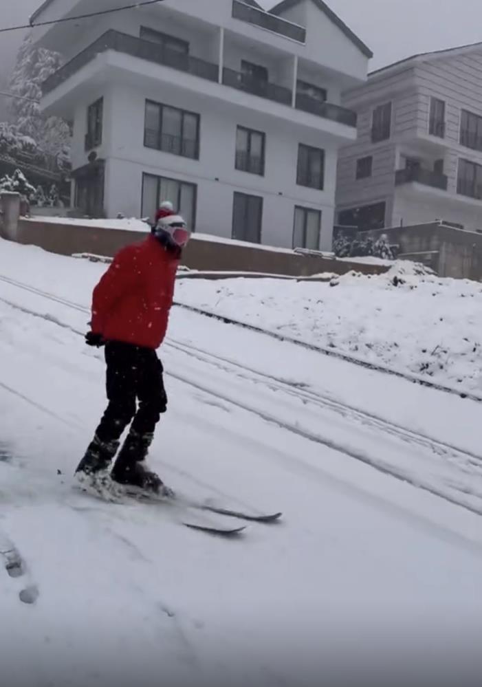 Merkez Yıldırım ilçesi Piremir Mahallesi’nde sabah saatlerinde etkili olan kar yağışı sonrası beyaza bürünen yollarda kayak takımıyla kayan vatandaş, çevredeki vatandaşların ilgisini çekti. O anlar cep telefonu kamerasıyla kaydedildi.