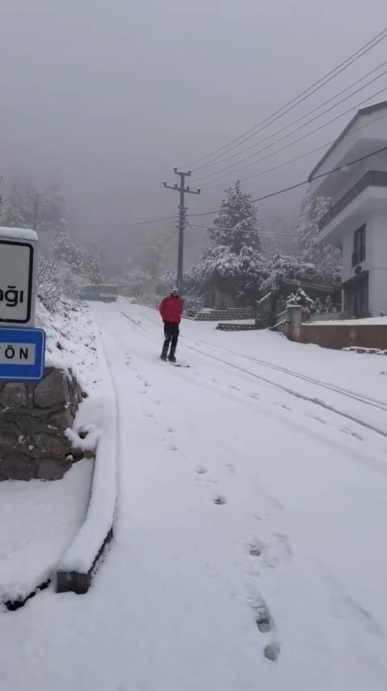 Bursa’da ilginç görüntü; Merkezde kayak yaptı