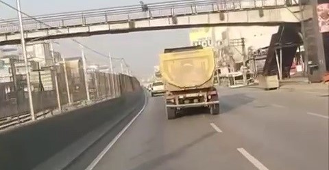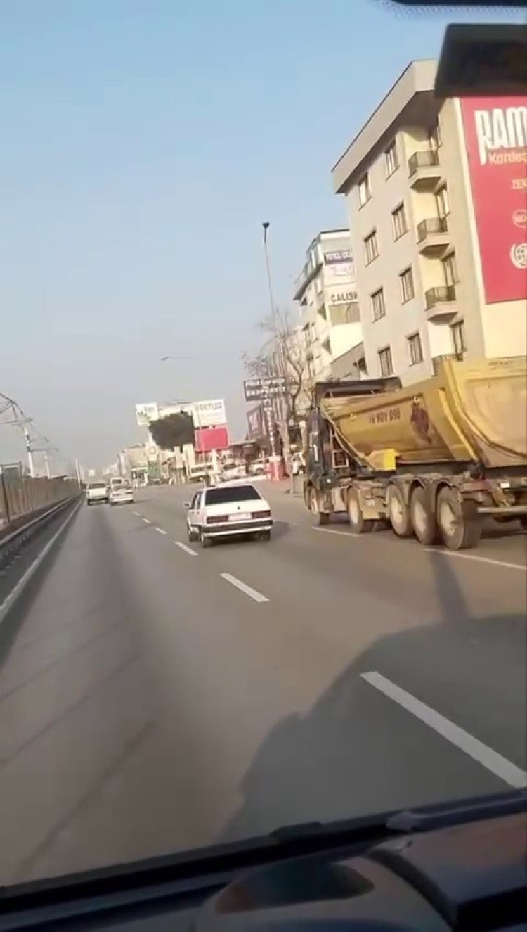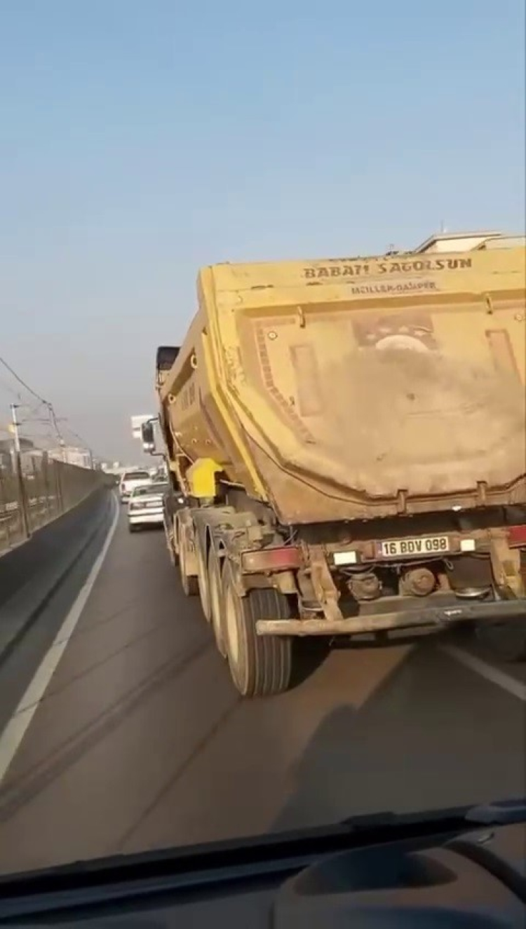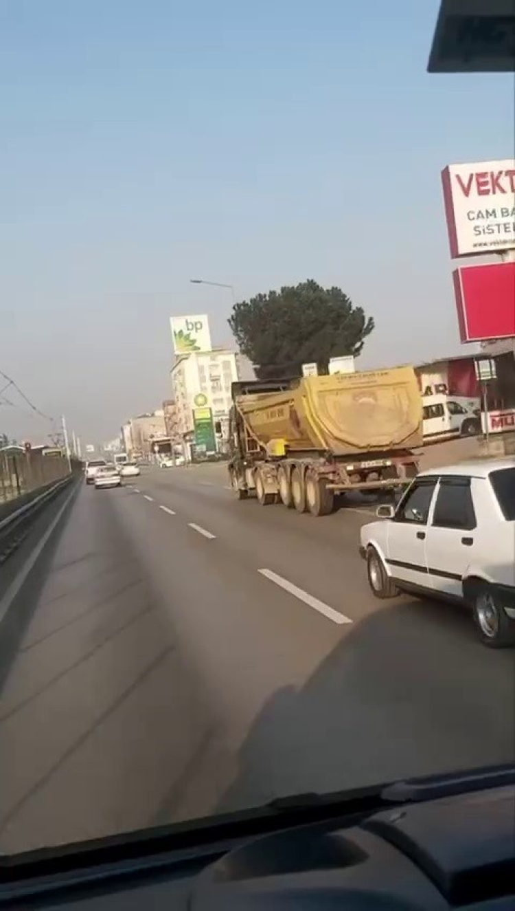 Sürücüsü ve plakası henüz öğrenilemeyen kamyon, bir anda makas atmaya başladı.