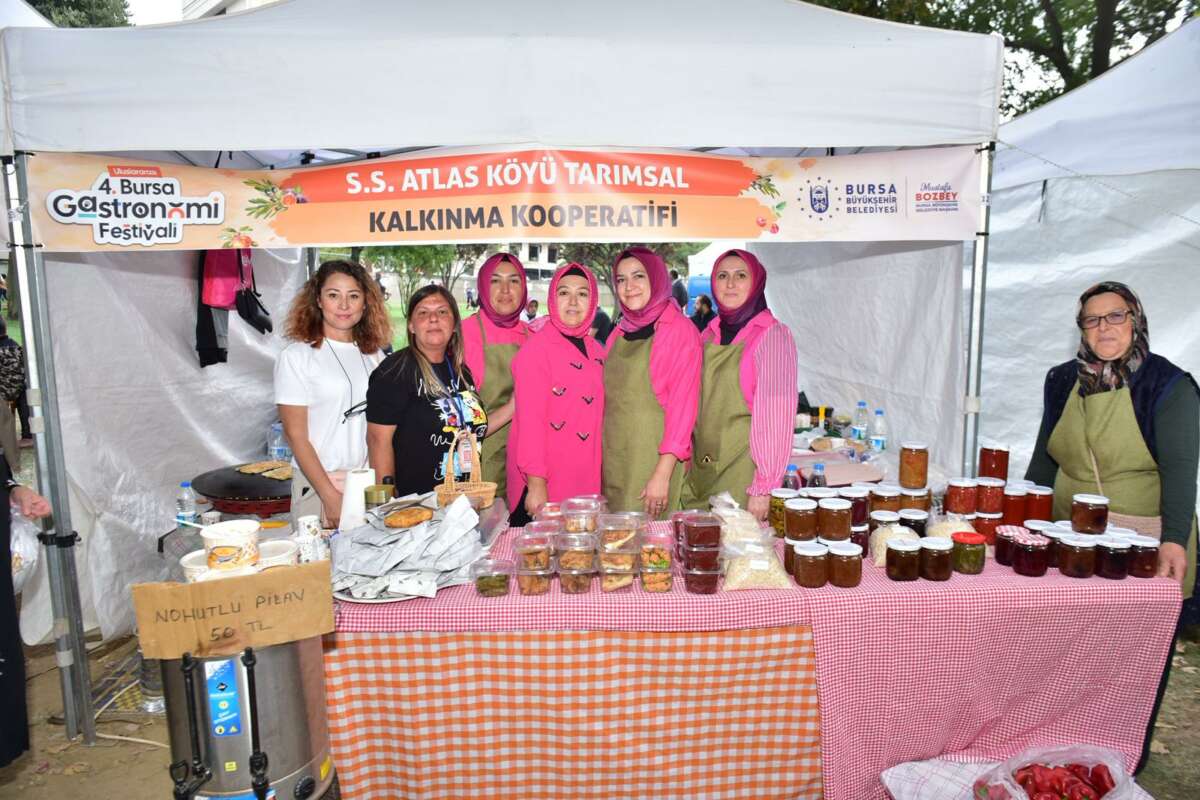 Festival kapsamında oluşturulan Bursa Üreten Kadınlar Sokağı’nda kendi ürünlerini sergileyen 34 kadın derneği ve kadın kooperatifi, el emeğiyle ürettikleri onlarca yöresel lezzeti binlerce ziyaretçiyle buluşturdu. Kestane unlu makarnadan kabuklu fasulyeye, yaban mersini reçelinden incirli acı tatlı sosa kadar kadın üreticilerin özenle hazırladığı Bursa’ya özgü ürünler, festivalin en özel tatları arasında yer aldı. Topraktan tabağa uzanan yolculuk ile kadın emeğinin değeri ve kent mutfağının zenginliği gözler önüne serildi. Büyükşehir Belediyesi’nin gübre desteğinden mazot ve alım desteğine kadar her alanda üreticiyi desteklediğini söyleyen kadın kooperatifleri temsilcileri, desteklerinden ve ilgilerinden dolayı Başkan Mustafa Bozbey’e, eşi Seden Bozbey’e ve Büyükşehir Belediyesi’ne teşekkür etti.