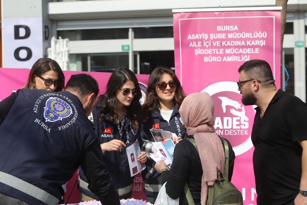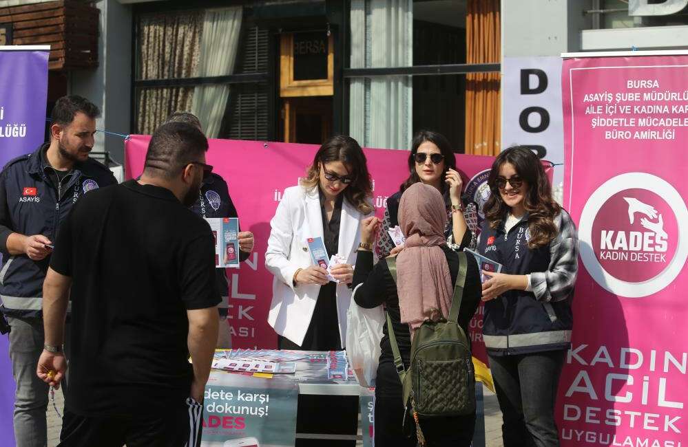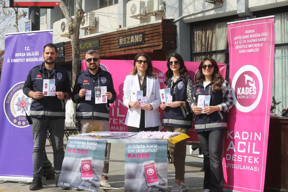 İçişleri Bakanlığı’nın kadına şiddetin önüne geçebilmek amacıyla geliştirdiği Kadına Destek Uygulaması (KADES) ile suç oranları ciddi anlamda azalırken, Bursa İl Emniyet Müdürlüğü Asayiş Şube Müdürlüğü’ne bağlı Aile İçi ve Kadına Karşı Şiddetle Mücadele Büro Amirliği ekipleri kent merkezi ve ilçelerde yaklaşık bin stant kurdu. Cadde ve sokaklarda vatandaşlara bilgi veren ekipler, kadınlara kendilerini korumaları ve acil durumlarda KADES’i nasıl kullanacağı hakkında bilgilendirdi. Yapılan uygulamalarla kadına yönelik şiddetin önüne geçilmesi hedeflenirken, polis ekiplerinden bilgi alan vatandaşlar ise memnuniyetlerini dile getirdi.
