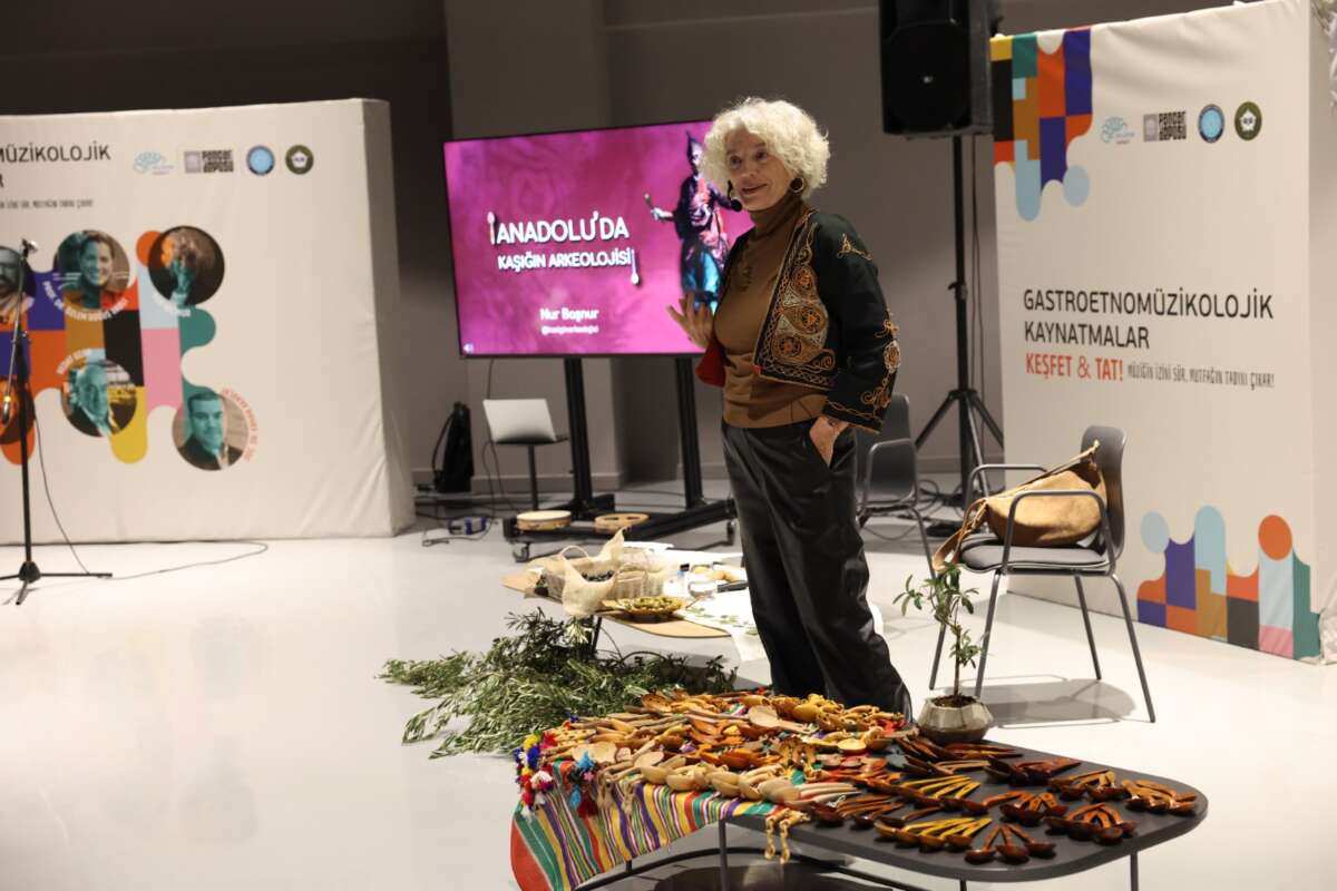 Programda “Anadolu’da Kaşığın Arkeolojisi” başlıklı bir sunum gerçekleştiren Nur Başnur, kaşığın sadece bir mutfak gereci olmadığını, aynı zamanda derin bir kültürel birikimi temsil ettiğini vurguladı. Başnur, kaşığın Türk ve dünya tarihindeki kullanım alanlarını, gelişim sürecini, dini ve kültürel sembollerini katılımcılarla paylaştı. Kaşığın sofradaki yerinden halk kültüründeki yansımalarına kadar pek çok detay, izleyiciler tarafından ilgiyle dinlendi.