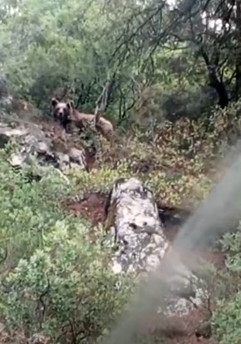 Bursa’nın Orhaneli ilçesi Letafet Mahallesi’nde kepçesiyle ilerleyen operatör Muzaffer Çetinkaya, ağaçların arasında gördüğü ayıyı cep telefonu kamerasıyla kayda aldı. Operatörün klakson çalmasıyla ayı ormanın derinliklerine doğru kaçarken, Çetinkaya, o anları sosyal medya hesabından paylaşarak, mantar toplamak için bölgeye gelen vatandaşları dikkatli olmaları konusunda uyardı.