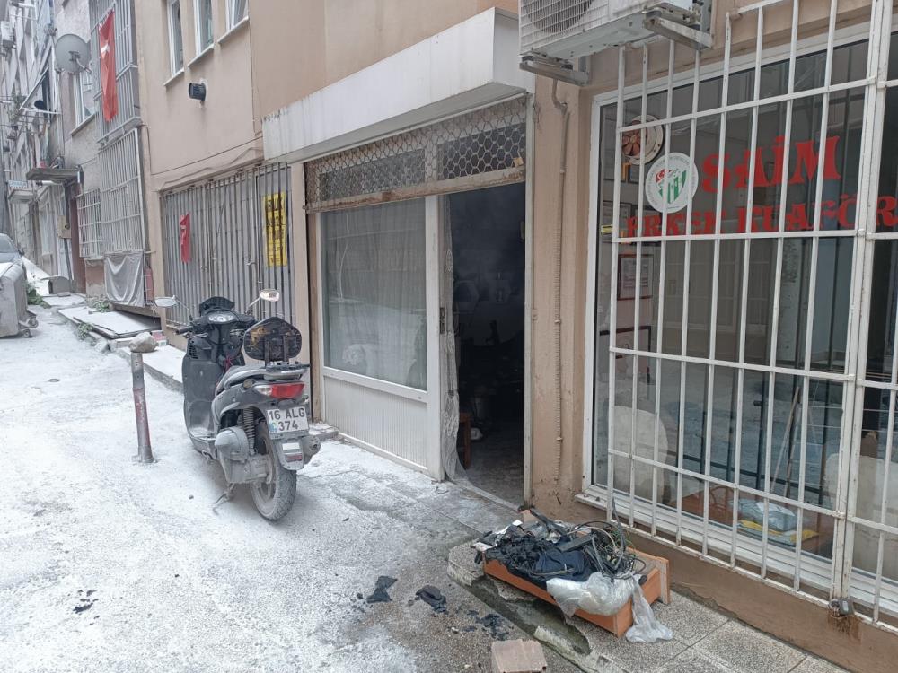 Bursa’da bir motosiklet tamir dükkanında jeneratörden çıkan yangın paniğe sebep oldu.