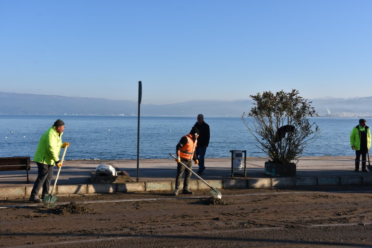 Gemlik Belediyesi Temizlik İşleri Müdürlüğü ekipleri, Kurşunlu Mahallesi’nde dün etkili olan fırtına ve yağışların ardından deniz seviyesinin yükselmesiyle sahil yolunda biriken kum ve çeşitli atıkları temizlemek için çalışma başlattı.