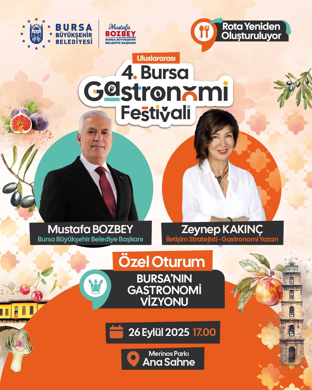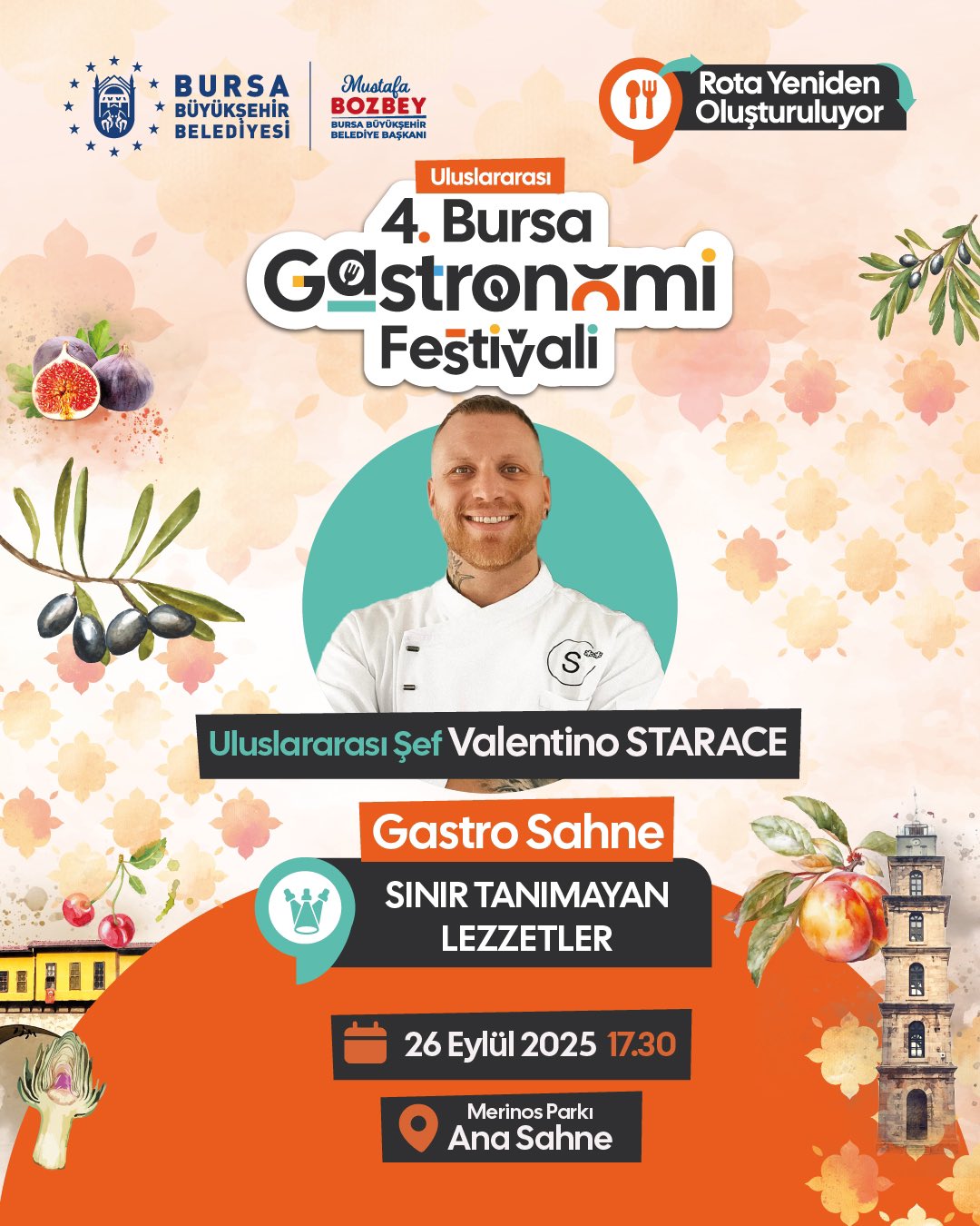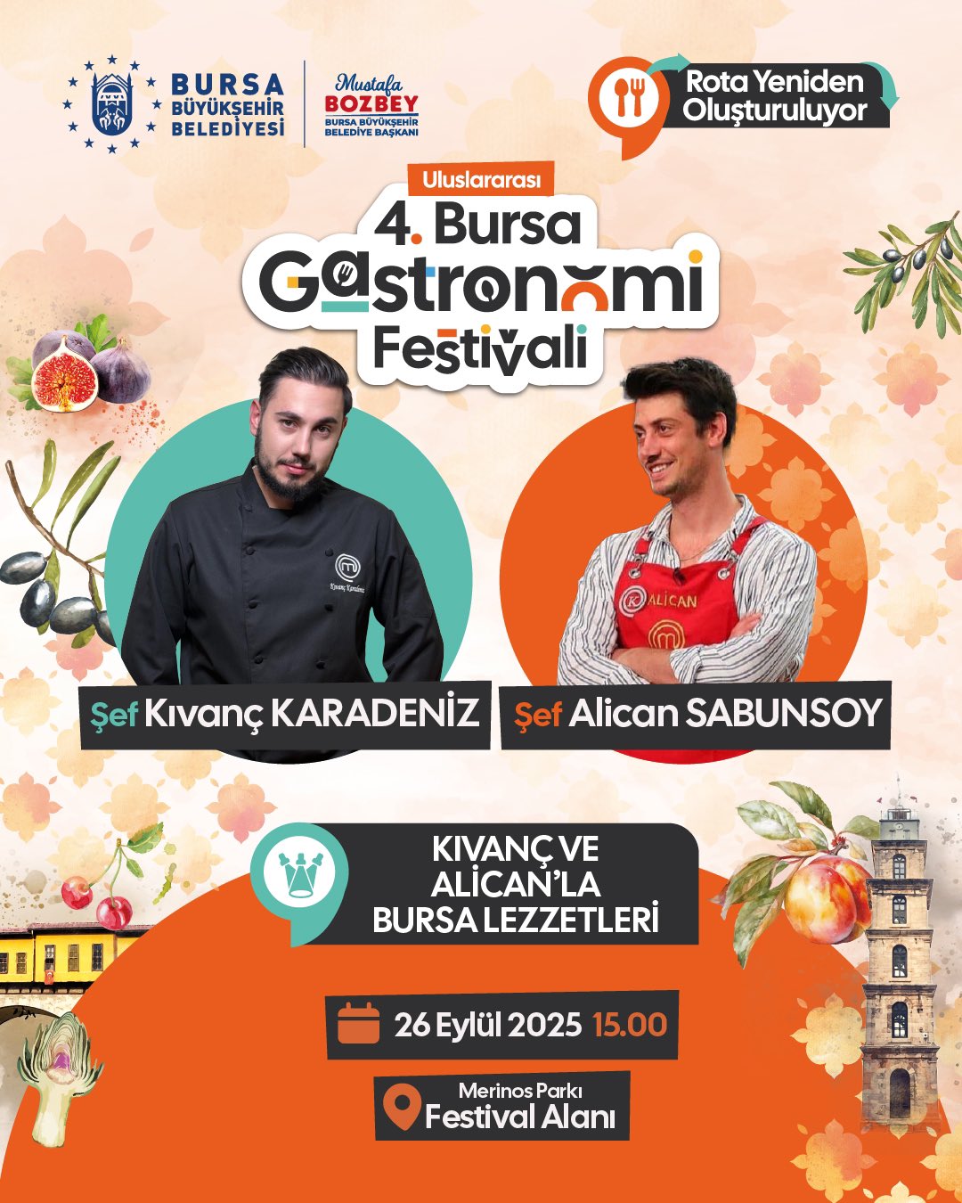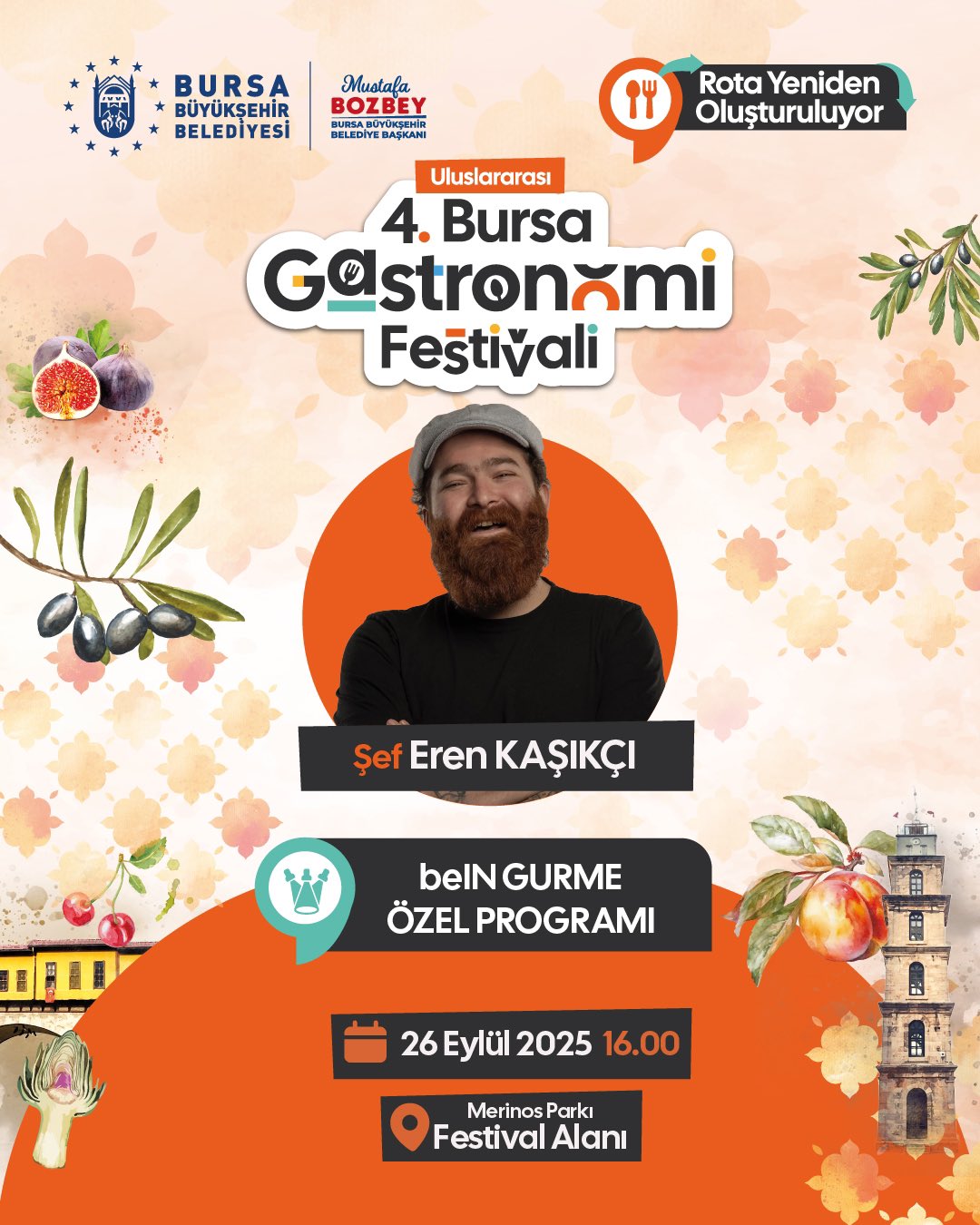 Uluslararası 4. Bursa Gastronomi Festivali, Bursa Büyükşehir Belediyesi’nin ev sahipliğinde gerçekleştirilecek. Üç gün sürecek etkinlikte, hünerli şefler asırlık tarifleri günümüz mutfağıyla buluşturacak. Festival boyunca sunumlar, tadım etkinlikleri, söyleşiler, yarışmalar, atölyeler ve konserler ziyaretçileri bekliyor.
