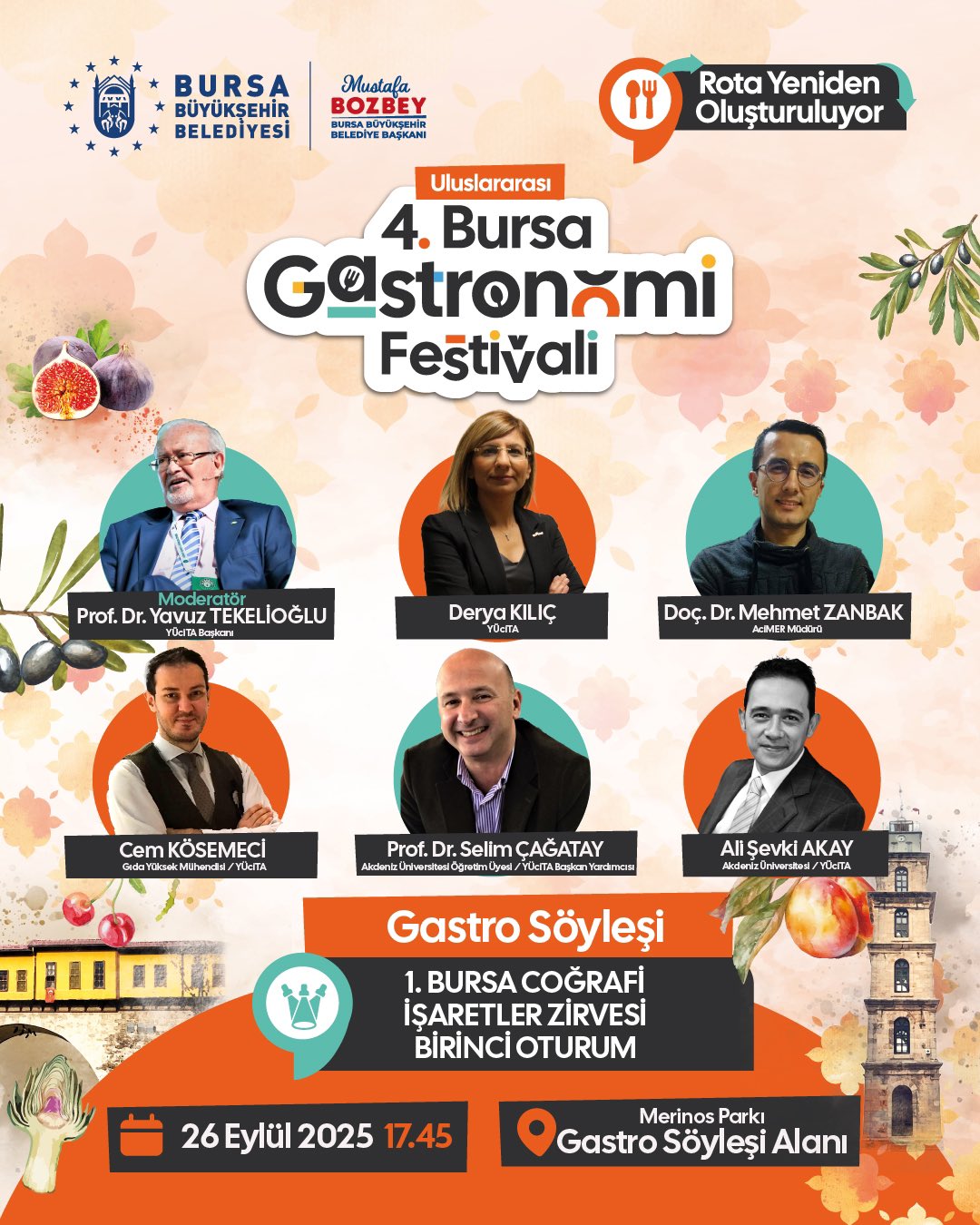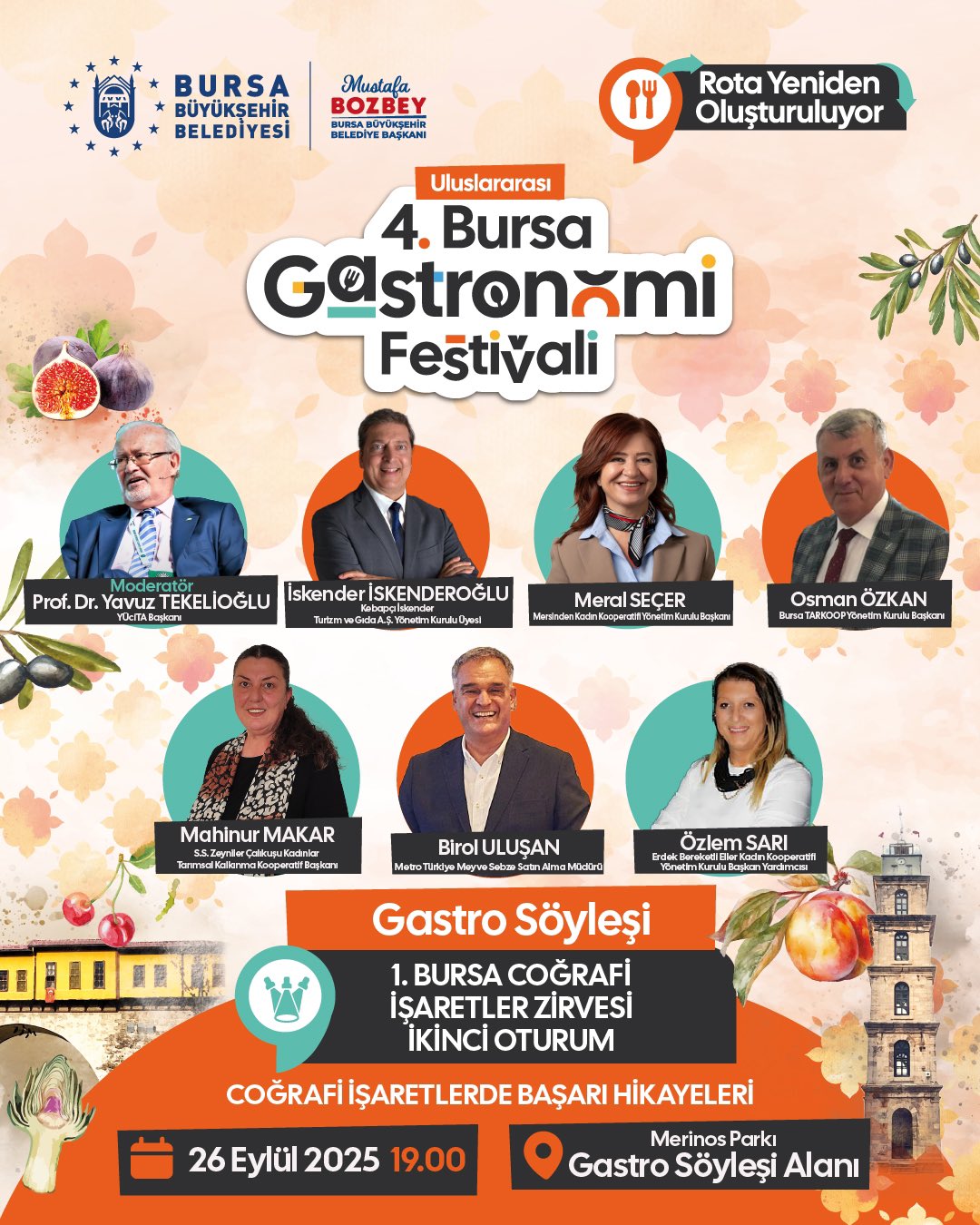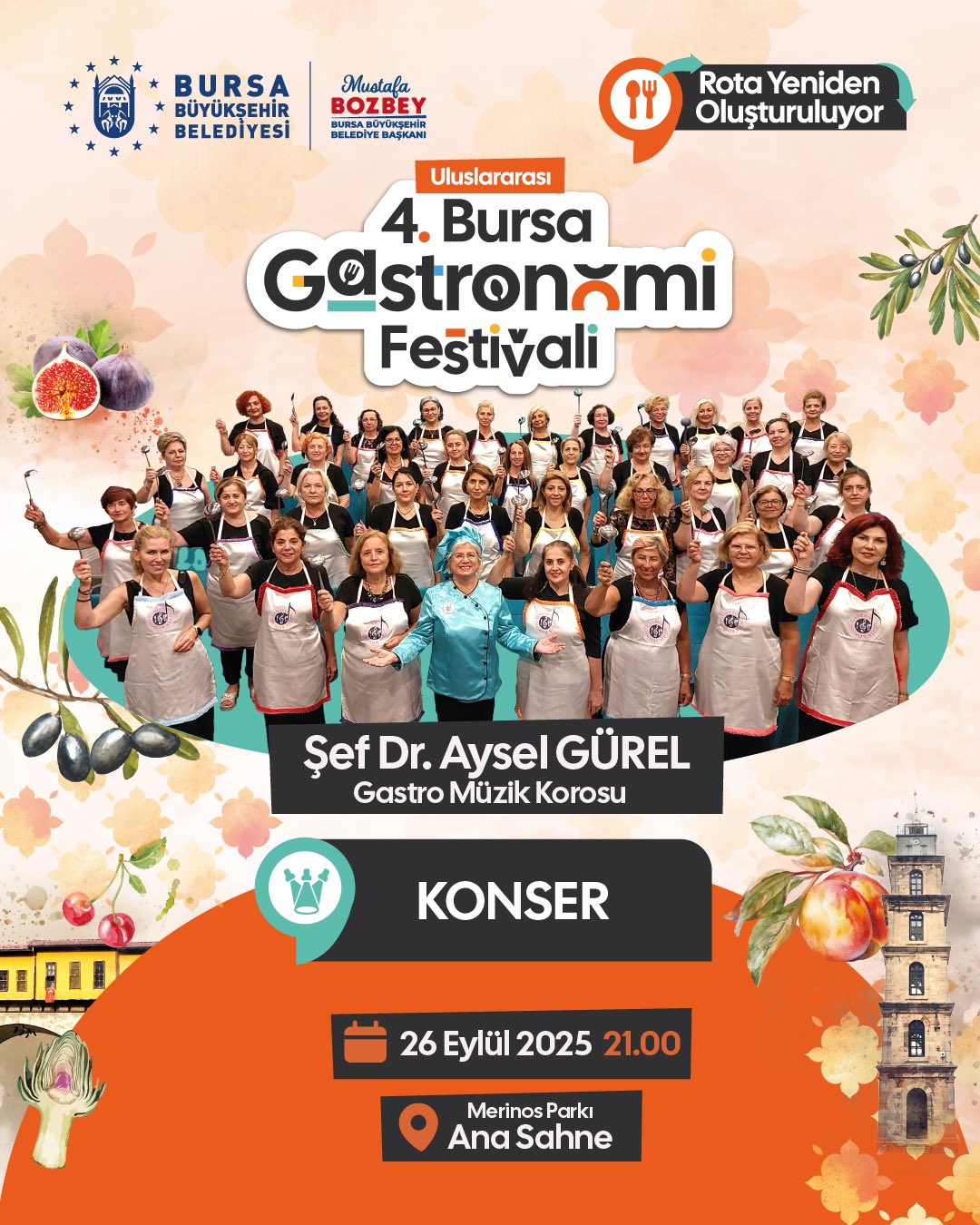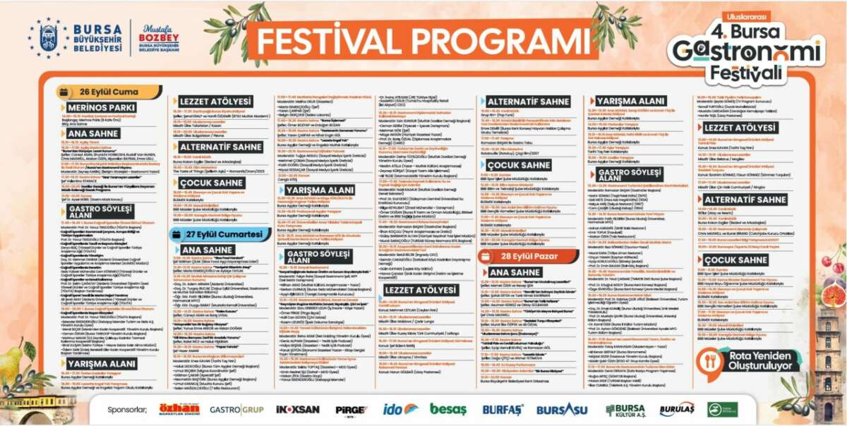 Uluslararası 4. Bursa Gastronomi Festivali, Bursa Büyükşehir Belediyesi’nin ev sahipliğinde gerçekleştirilecek. Üç gün sürecek etkinlikte, hünerli şefler asırlık tarifleri günümüz mutfağıyla buluşturacak. Festival boyunca sunumlar, tadım etkinlikleri, söyleşiler, yarışmalar, atölyeler ve konserler ziyaretçileri bekliyor.