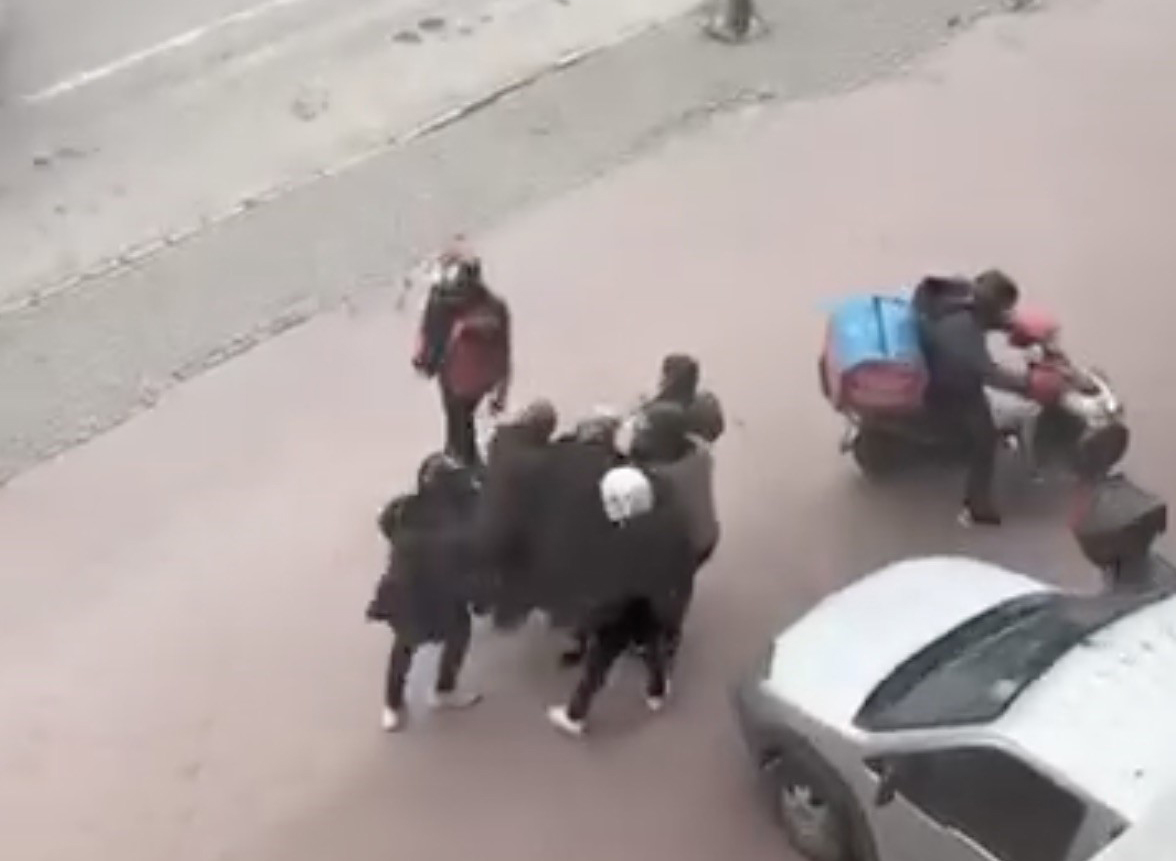 Bu sırada bölgede bulunan 5-6 motosikletli kurye ise yaşlı kadının önünde ve yanında durarak rüzgâra karşı siper oldu. Vatandaşların yardımıyla yaşlı kadın güvenli bir noktaya ulaştırıldı.