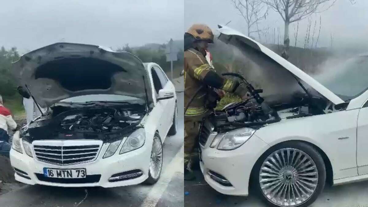 Edinilen bilgiye göre, 16 MTN 73 plakalı lüks bir otomobilden aniden dumanlar yükseldi.