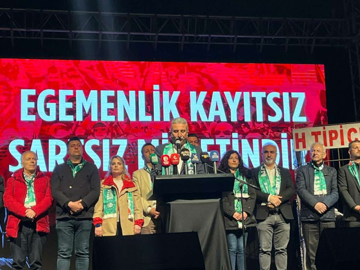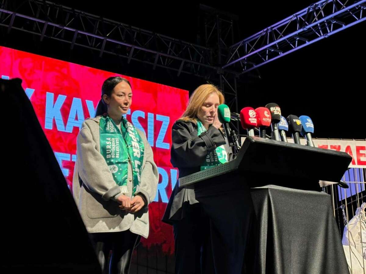 Hastane alanında toplanan kalabalığa hitap eden CHP Bursa İl Başkanı Nihat Yeşiltaş, konuşmasında “millet iradesi” vurgusu yaptı. Yeşiltaş, “Halkın oylarıyla seçilmiş bir başkanın görevden alınmasını kabul etmiyoruz. Millet iradesi bu meydandadır. Bursa’nın başkanı Mustafa Bozbey’dir” ifadelerini kullandı.