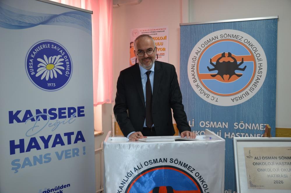 Bursa Kanserle Savaş Derneği’nin katkıları ile Onkoloji Hasta Okulu’nu hayata geçirmekten duyduğu memnuniyeti dile getiren İl Sağlık Müdürü Uzm. Dr. Mustafa Çetin ise, “Bu okuldan çıktıktan sonra hastalarımızın sağlık okuryazarlığı artacak, sağlık okuryazarlığı artan bir kanser hastasının da tedaviyle uyumu çok iyi hale gelecektir. Biz bu noktada İl Sağlık Müdürlüğü olarak Bakanlığımızdan aldığımız ilhamla sahada bu tür uygulamalarımızı, iyi uygulama örneklerimizi artıracağız ve bunu akademik çalışmalarla destekleyeceğiz. Bu akademik çalışmalar ışığında yeni verilerin ortaya çıkacağına ve sonraki çalışmalarımızı daha üst seviyelere çıkaracağından eminiz. Bu okulumuzun, bize sunduğu bu imkanların vatanımıza, milletimize, Bursa’mıza ve bölgemize hayırlı olmasını temenni ediyorum.” İfadelerini kullandı. Çetin son olarak, kanser tedavisi sürecinin zorlu ancak rehberlik eşliğinde yürünürse çok kolay atlatılacak bir süreç olduğuna dikkat çekerek; yeni teşhis almış bütün kanser hastaları, bu okuldan hizmet almaya davet etti.