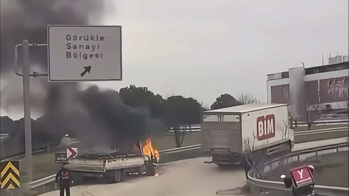 Edinilen bilgilere göre, İzmir Yolu’ndan Görükle dönüş sapağına ilerleyen kamyonet, henüz bilinmeyen bir nedenle aniden alev aldı.