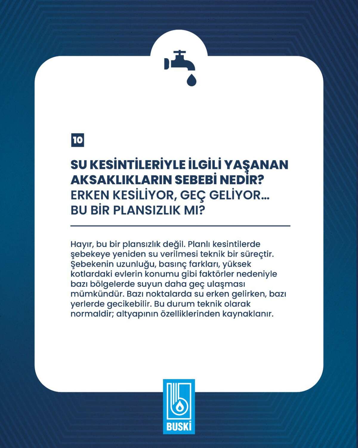 İşte BUSKİ’nin yayımladığı “10 Soru 10 Cevap” bilgilendirmesi: