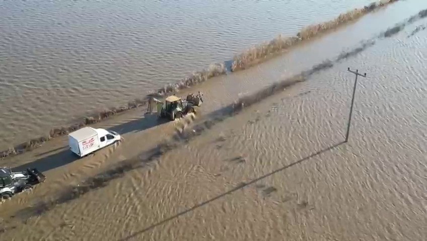 Öte yandan, taşkın nedeniyle binlerce dönüm ekili tarım arazisi de sular altında kaldı. Çiftçiler büyük zarar yaşarken, yetkililer, yolun geçici süreyle ulaşıma kapatılacağını bildirerek vatandaşlara alternatif güzergahları kullanmaları yönünde uyarıda bulundu.