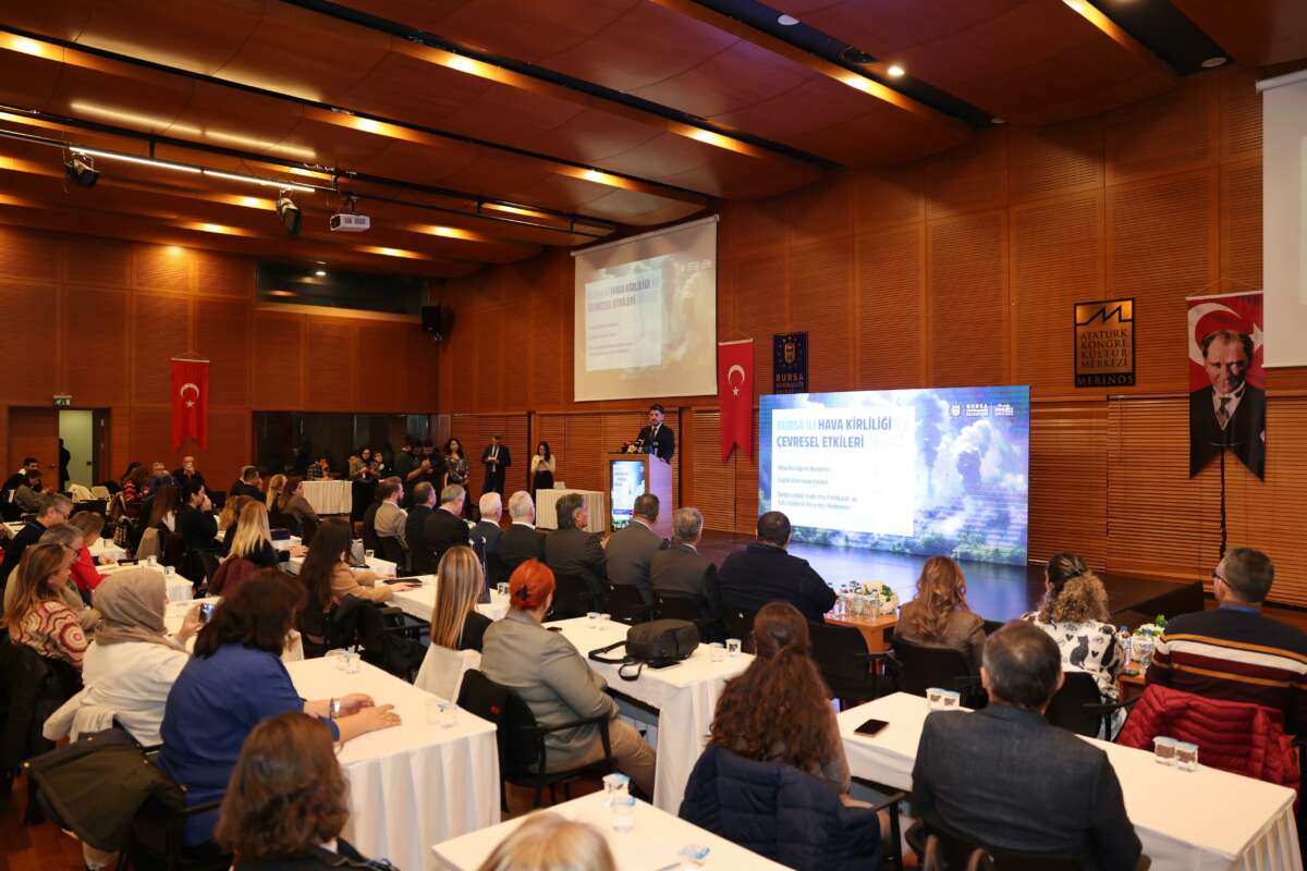 Bursa Büyükşehir Belediyesi Çevre Koruma ve Kontrol Dairesi Başkanlığı tarafından hava kalitesinin iyileştirilmesine yönelik çalışmaları artırmak, kurumlar arası iş birliğini güçlendirmek ve mevcut durumun bilimsel veriler ışığında değerlendirilmesini sağlamak amacıyla ‘Hava Kirliliği ve Çevresel Etkileri Paneli’ düzenlendi. Atatürk Kültür Merkezi Merinos Yerleşkesi’ndeki programa, Bursa Büyükşehir Belediye Başkanı Mustafa Bozbey’in yanı sıra aynı zamanda Halk Sağlığı Uzmanı olan CHP Bursa Milletvekili Prof. Dr. Kayıhan Pala, Bursa Kent Konseyi Başkanı Prof. Dr. Ertuğrul Aksoy, Büyükşehir Belediyesi yöneticileri, siyasi parti temsilcileri, meclis üyeleri, akademisyenler, kamu kurumları, meslek odaları ve sivil toplum kuruluşlarının temsilcileri katıldı.