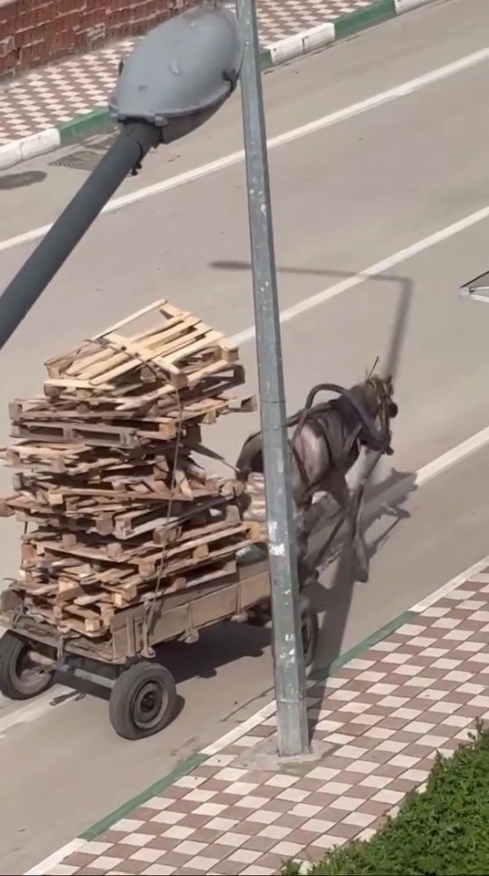 Bursa’nın Karacabey ilçesinde kimliği henüz öğrenilemeyen bir kişi, at arabasına kat kat palet yükledi. Aşırı yük nedeniyle yükün ağırlığı altında güçlükle ilerleyen atın dengesini sağlamakta zorlandığı anlar, çevrede bulunan bir vatandaş tarafından cep telefonu kamerasıyla kaydedildi.