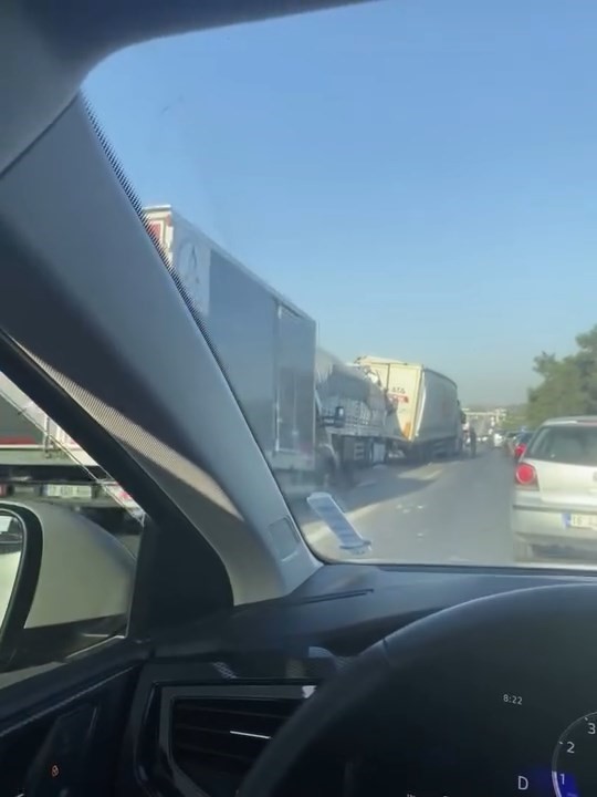Edinilen bilgiye göre, Bursa istikameti yönünde yaşanan kazada otomobilin aniden durmasıyla arkadan gelen yüklü kamyon ve kamyonetler, peş peşe birbirine çarptı. 5 aracın karıştığı kazada 2 kişi yaralandı. İhbar üzerine bölgeye polis ve sağlık ekipleri sevk edildi. Yaralılar, çevre hastanelere sevk edilirken kazanın hemen ardından ortaya çıkan manzara cep telefonu kameralarına yansıdı. Kaza nedeniyle trafik tek şeritten sağlandı.
